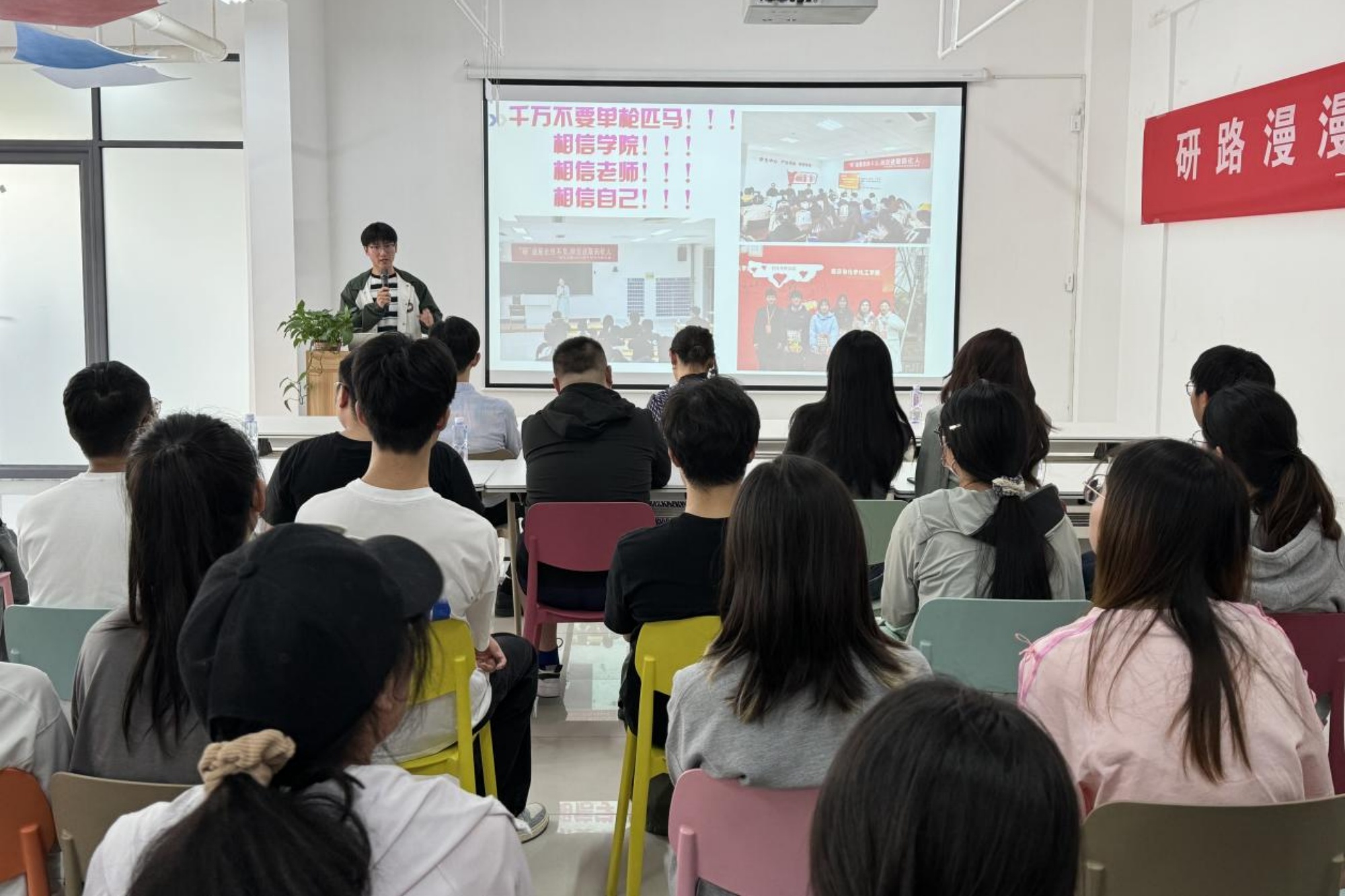 为进一步帮助2025届考研学生坚定信心、明确目标、科学备考,5月31日,医药与化学化工学院在校“一站式学生社区”举办“研路漫漫 药化相伴”考研学生指导会。医药与化学化工学院院长牟伊、党总支副书记张红祥、2024届优秀考研学生代表、2025届考研学生以及相关班主任和辅导员参加活动。