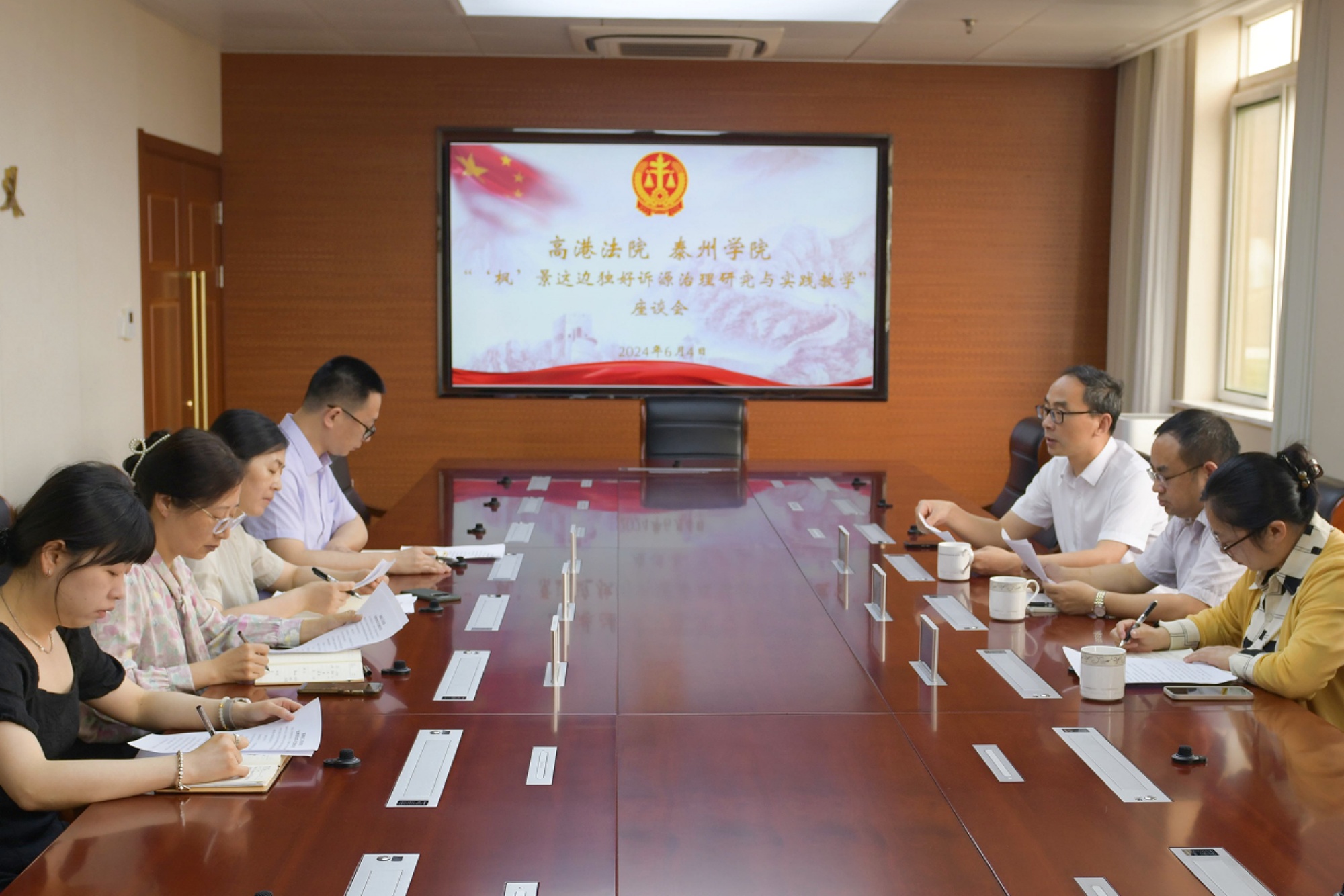 6月4日上午,为进一步推动校地深度合作,促进法学理论与司法实践有机结合、法学教育与法律职业紧密衔接,全面加强应用型大学和专业实践建设,bat365与泰州市高港区人民法院召开了首批法官助理暑期社会实践前期准备会议。人文学院院长钱成、副院长官小燕、教授杨东升,高港法院审判委员会专职委员丁书华、政治处主任谭松海、立案庭庭长谭毅等出席本次活动。