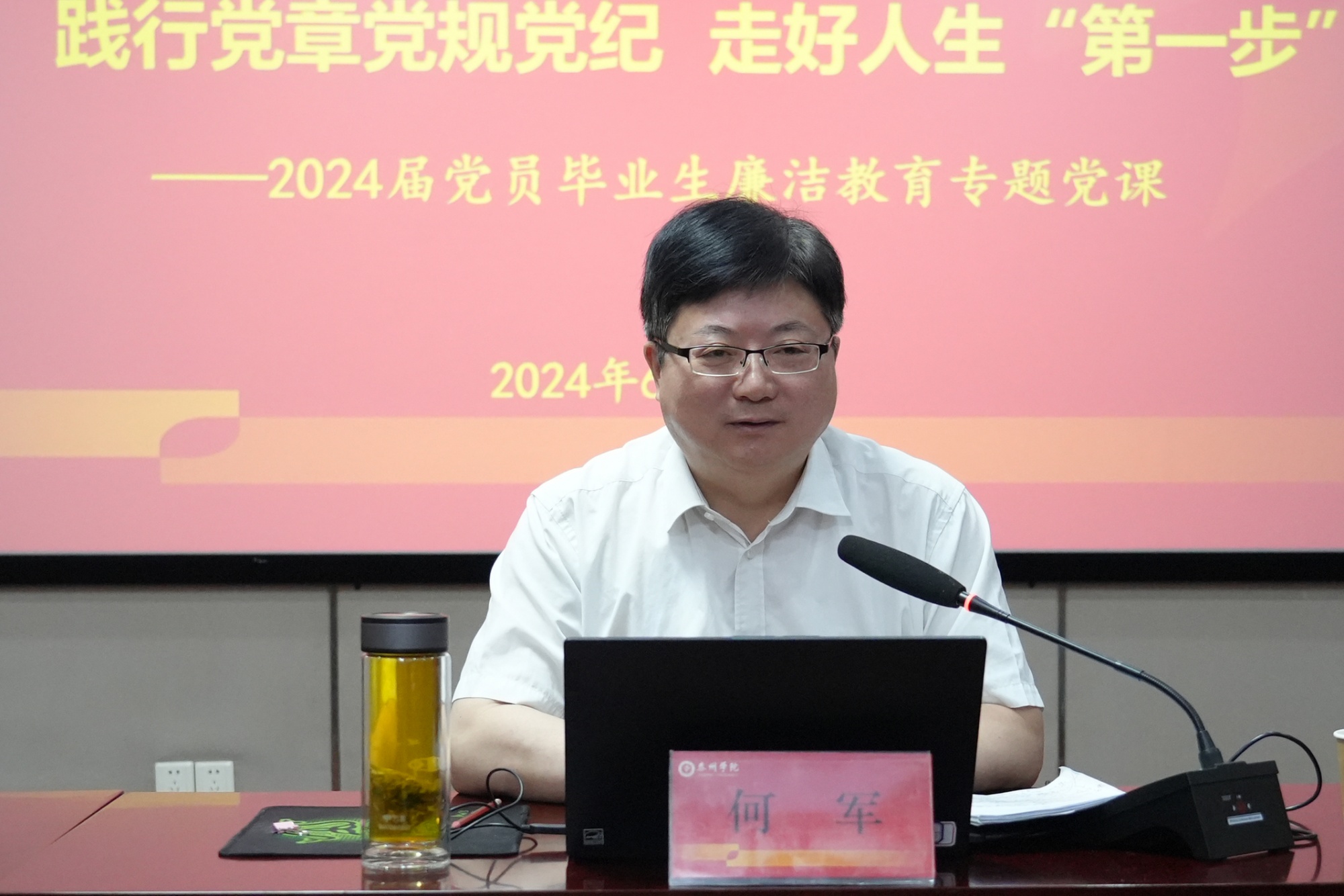 为扎实加强党的纪律建设、推动全面从严治党向纵深发展,引导毕业生党员永葆廉洁初心,帮助毕业生党员扣好职业生涯的“第一粒扣子”,在全党上下深入开展党纪学习教育之际,6月5日上午,校党委常委、纪委书记何军应邀为2024届毕业生党员讲授廉洁教育专题党课,学工处负责人、2024届毕业生党员代表50余人参加学习。