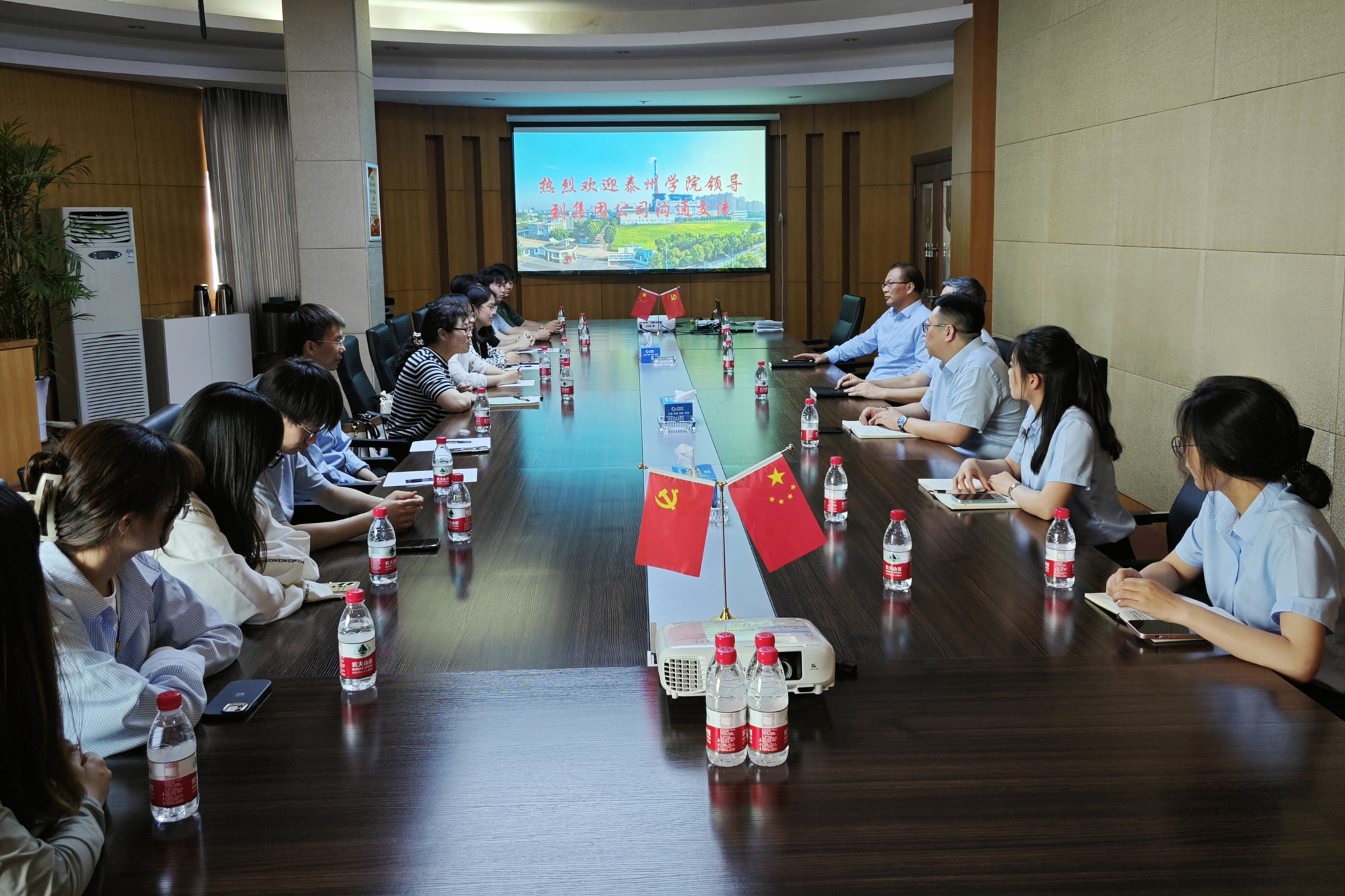 双方在集团会议室举行座谈会,就人才培养、实习实训就业基地建设、科研项目合作等多个维度展开深入交流。徐振华表示,金泰环保热电作为国内热电行业领跑者,非常期待与地方高校建立长期合作关系,共同培养未来产业发展需求的高素质人才。杨智红指出,信息工程学院将不断优化课程设置,突出实践教学,以更好地对接企业需求,尽可能为学生提供多元化就业渠道。
