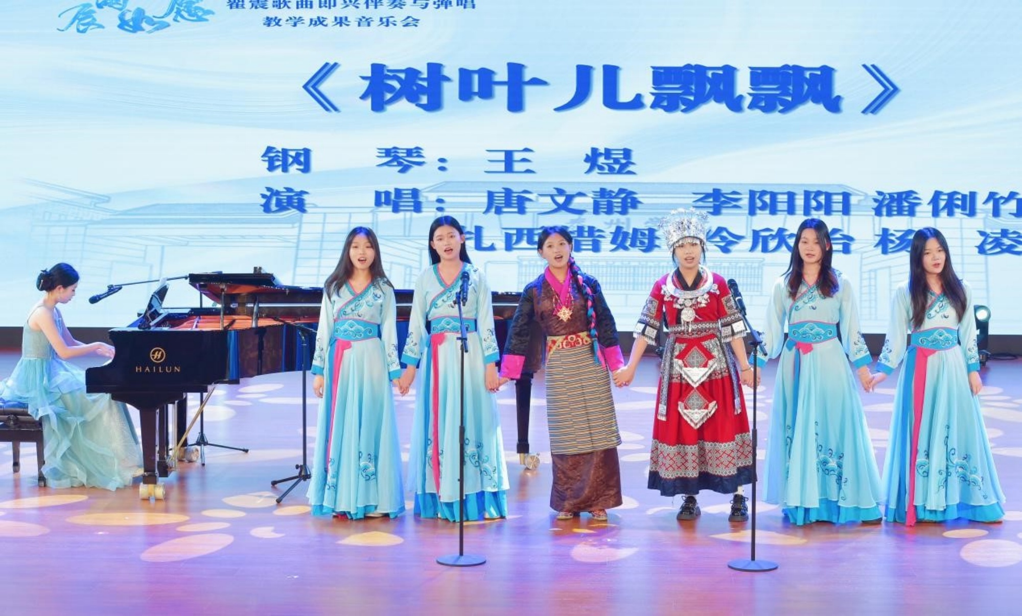歌曲即兴伴奏作为音乐学师范专业的必修课程,旨在培养学生的音乐创作能力和即兴表演技巧。本次音乐会紧扣培养计划,充分展现了音乐学专业的培养目标,凸显了专业特色。音乐会共分为三个篇章,每个篇章精心挑选了课程教学中所涉及的中小学各级曲目,既体现了教学的系统性,又展示了教学内容的多样性。