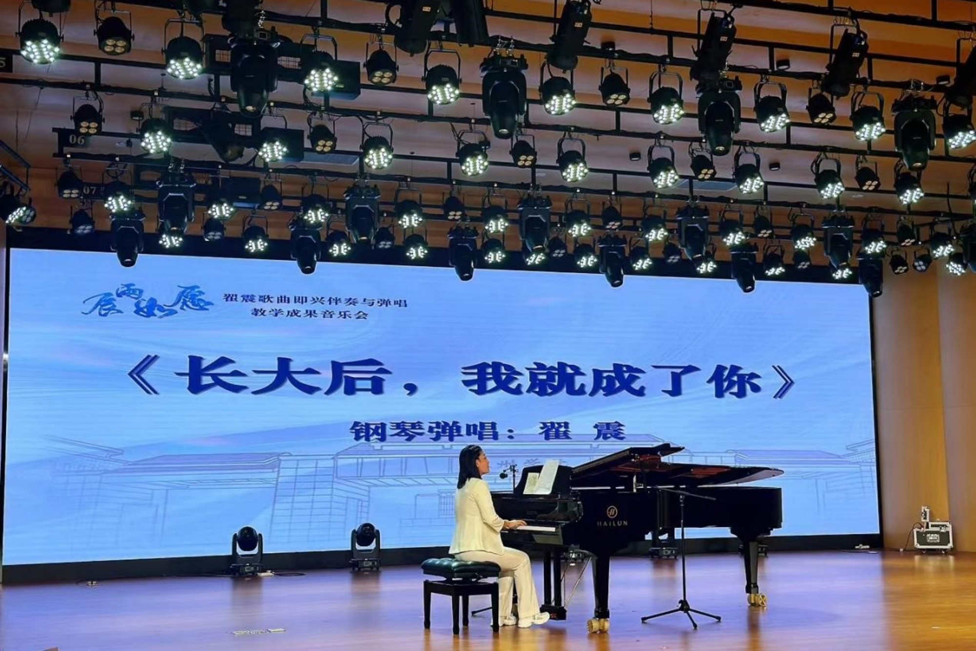 音乐会最后在翟震老师深情弹唱的《长大后,我就成了你》中画上了圆满的句号。这首歌曲不仅是对学生们成长的最好诠释,也是对翟震老师多年来辛勤付出的最好回报。在悠扬的琴声中,观众仿佛看到了学生们在音乐道路上不断前行、不断成长的身影。