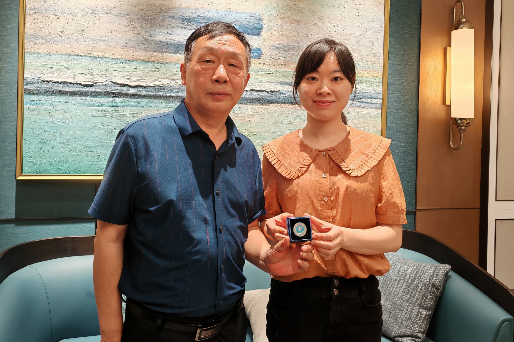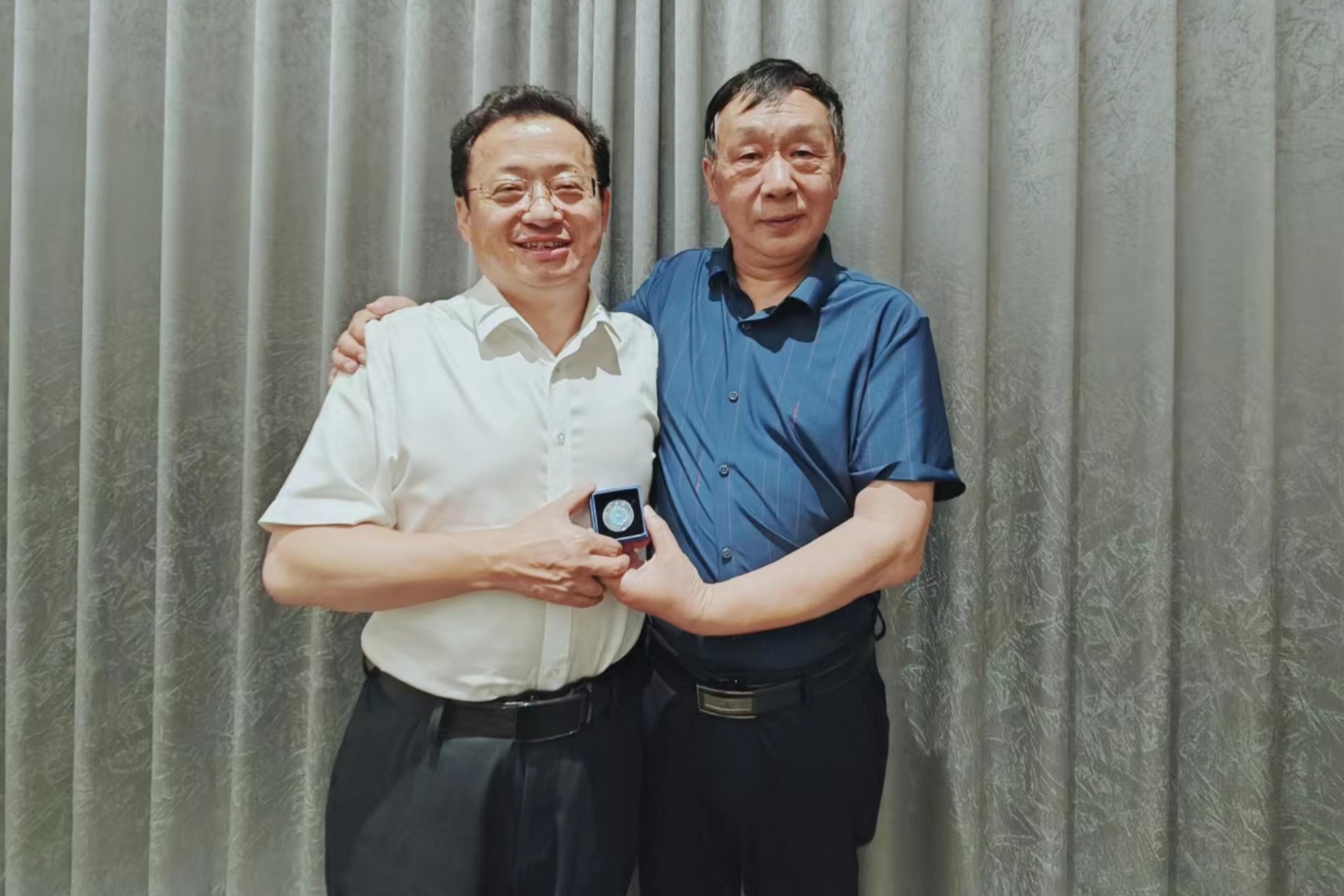 张曙光向两位优秀校友赠送了校友徽章,祝愿校友们在各自岗位上取得更加优异的成绩,期待校友们多为学校发展建言献策,有时间就常回“家”看看。