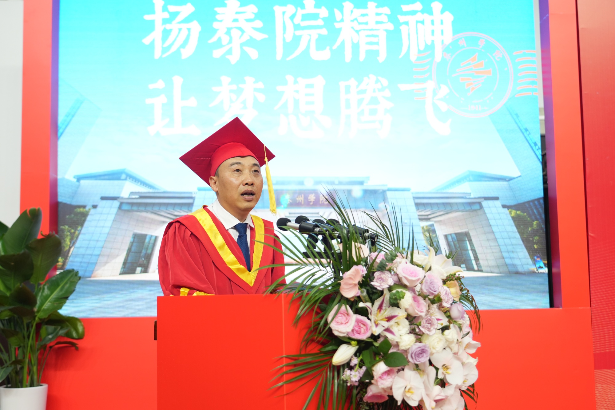校党委副书记、校长季赛发表了题为“扬泰院精神,让梦想腾飞”的讲话。他回顾了泰院精神在学校83年奋斗史中的积淀和彰显,肯定了2024届毕业生在泰院精神激励下取得的优异成绩。他期待同学们将泰院精神体现在“扎根”祖国大地、把“小我”融入“大我”的爱国情怀里;体现在“深耕”发展领域、成为行家里手和专业人才的学习意识里;体现在“勇闯”难关堵点、敢于开新局走新路的开拓气度里;体现在“善创”新质成果、投身创新创业创造热潮的奋进姿态里。