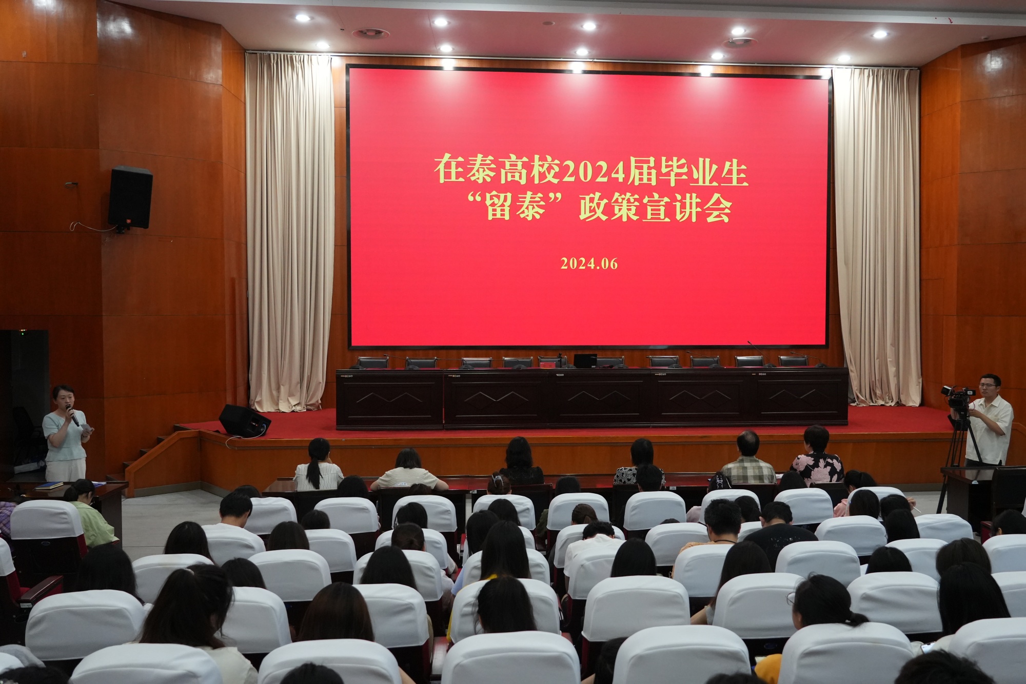 为推动青年人才“留泰”政策走进高校,做优做实青春“留泰”专线,助力青年和人才友好型城市建设,6月19日下午,团市委联合市委人才办、市住建局走进学校,开展“留泰”政策宣讲会。来自各在泰高校的近200名留泰毕业生代表和高校负责学生就业工作的老师参加活动。