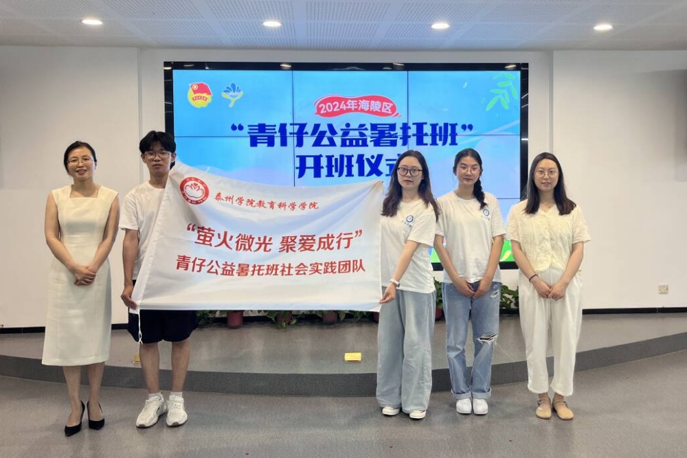 仪式上,孙翔宇对海陵区全区暑托班办班情况做了介绍。他表示,区团委将锚定“暖心事做出高品质,以高品质塑造好口碑”,力争把“公益暑托班”办成孩子们的“成长班”。团市委希望办负责人包思远、海陵区委教育工委副书记姜凌、海陵区关工委副主任葛中国向教育科学学院“萤火微光,聚爱成行”大学生志愿服务队、在职教师志愿服务队、“五老”志愿服务队授旗。