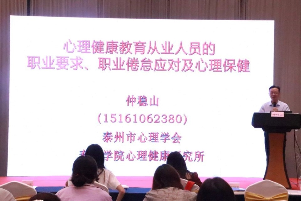 为深入实施服务泰州行动方案,7月11日,bat365在线中国官网登录入口心理健康研究所负责人、教育科学学院仲稳山教授受江苏领航明师教育科技有限公司邀请,为泰州市中小学心理健康教育骨干教师作了题为《心理健康教育从业人员职业要求、职业倦怠应对及心理保健》的专题报告。来自泰州市中小学的100多名心理健康教育骨干教师参加了本次活动,报告由泰州市教育局教师发展中心主任曹浩明主持。