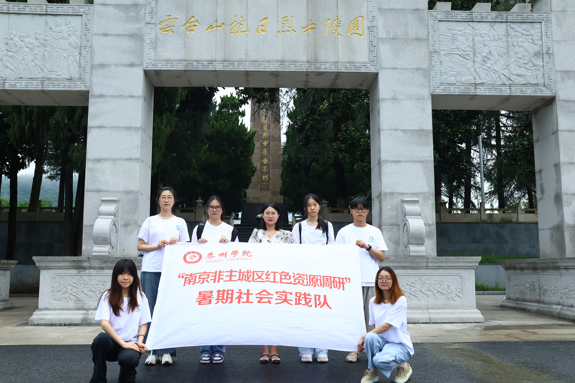 近日,在马克思主义学院党总支、泰州市红色文化协同研究中心指导下,“南京非主城区红色资源调研队”顶着烈日梅雨赶赴南京市六合、江宁、鼓楼等区的郊区寻访红色资源,开启暑期“行走的思政课”,在缅怀革命先烈、访谈英雄老兵、弘扬红色文化实践中助推青年学子实现自我淬炼、自我浸润、自我教育。