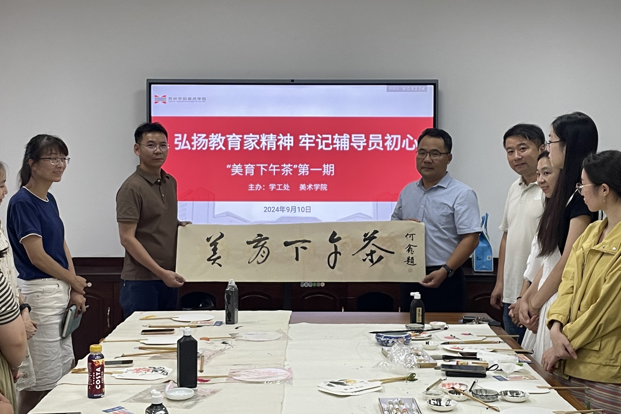 为庆祝第40个教师节,9月10日下午,由校学工处和美术学院联合举办的美育下午茶在艺术楼1601举办。校学工处处长陈茂国、美术学院党总支书记吴新林和30余名辅导员代表共同出席活动。活动由美术学院党总支副书记、副院长于晶晶主持。