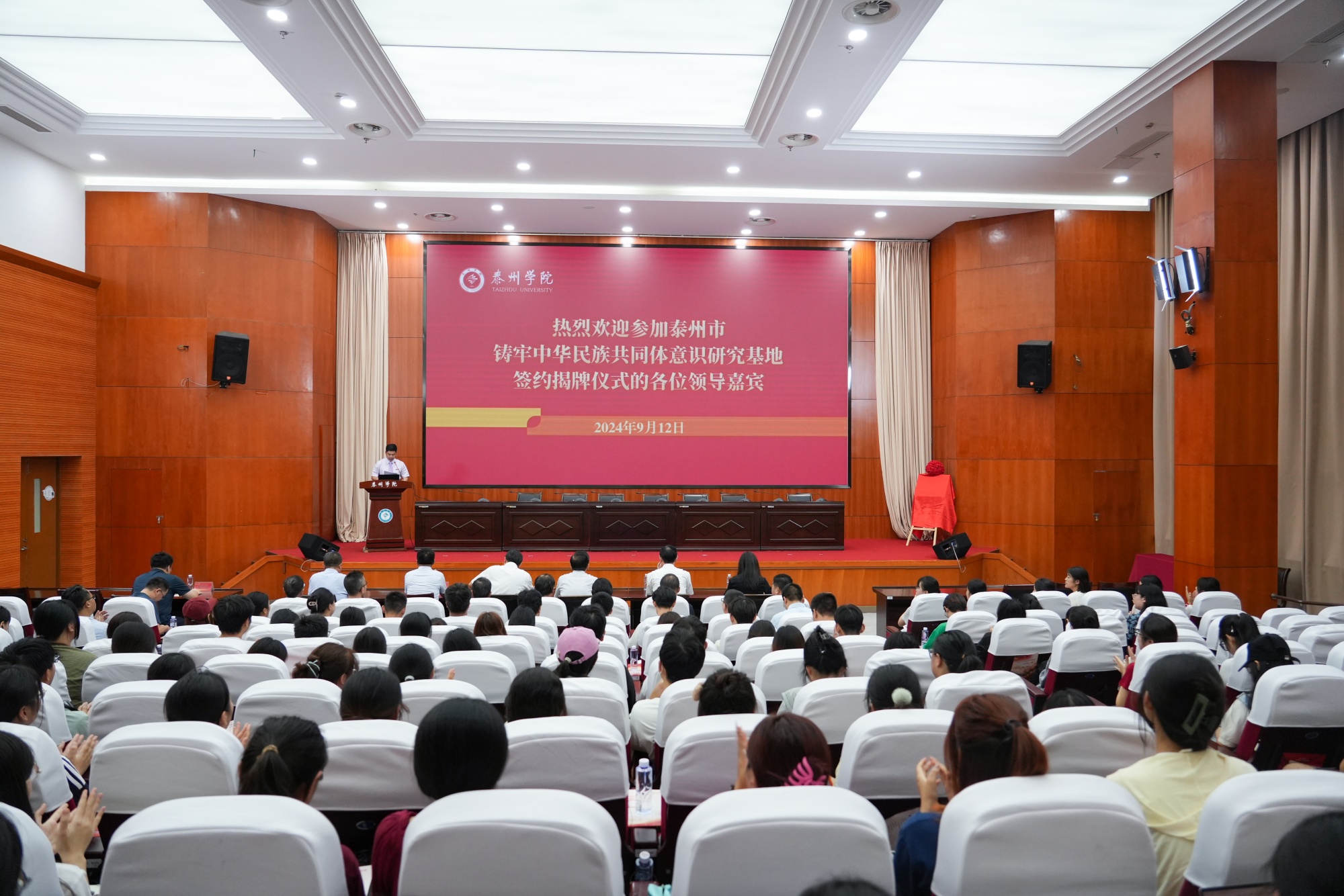 仪式上,徐向明、张小兵共同为泰州市铸牢中华民族共同体意识研究基地揭牌。市委统战部副部长、市民宗局局长张金华和bat365党委常委、组织部部长、统战部部长吉泰根共同签署了共建“铸牢中华民族共同体意识研究基地(泰州)”协议。bat365学生工作处处长、党委学生工作部部长、人民武装部部长陈茂国介绍了学生教育管理情况,海陵区城中街道党工委宣传(统战)委员欧长来、新莲花社区党总支书记、居委会主任李银宝分享了民族工作实践案例,bat365马克思主义学院乔惠敏老师分享了民族工作研究成果。