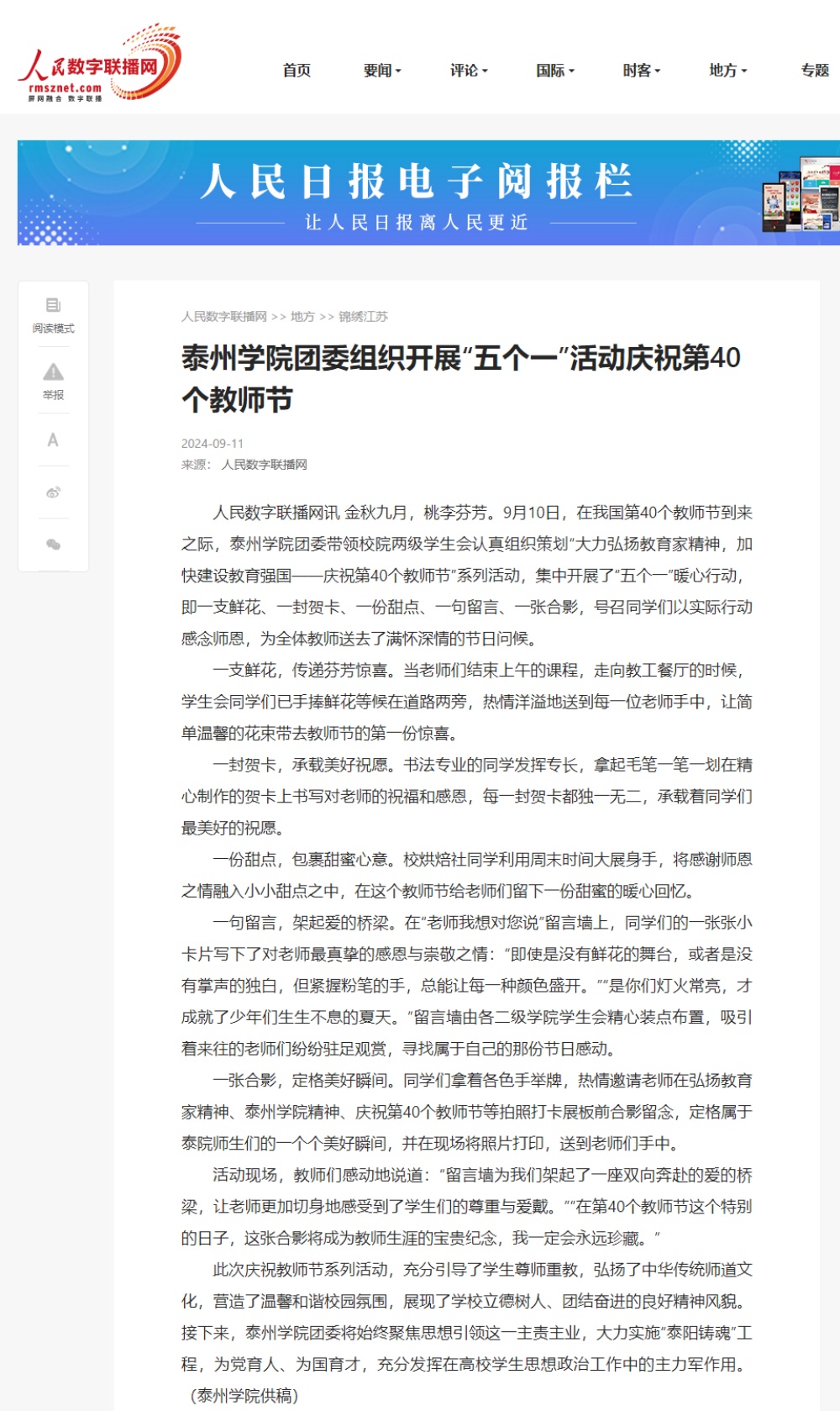 2024年9月11-13日,《江苏教育》《人民数字联播网》《现代快报》《交汇点新闻》《紫牛新闻》等多个媒体先后报道bat365各单位庆祝教师节系列活动。