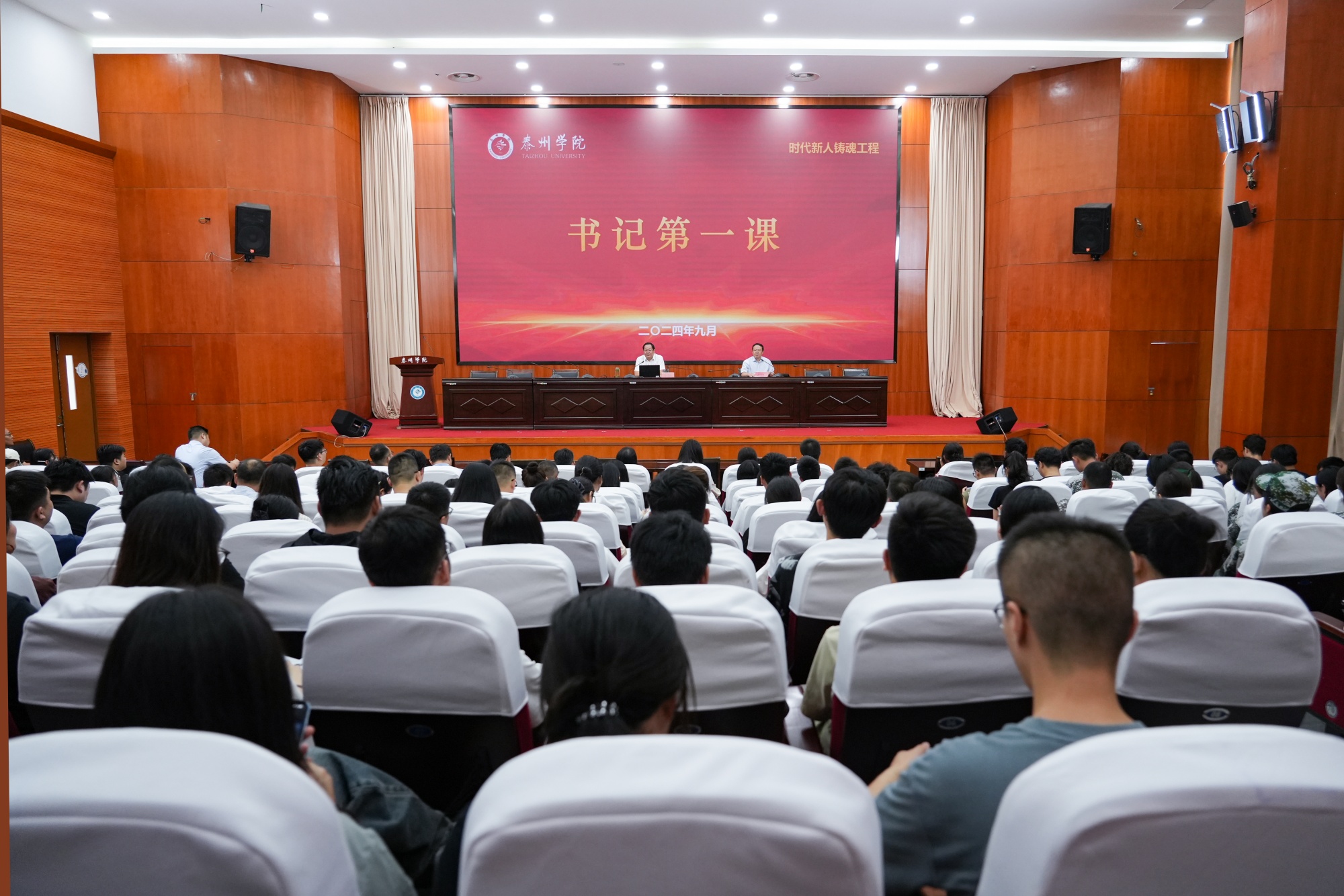 9月19日下午,校党委书记徐向明以《紧扣中国式现代化主题 进一步全面深化改革》为题,为新进师生代表讲授了“书记第一课”。讲座由校党委常委、副校长薛小平主持。