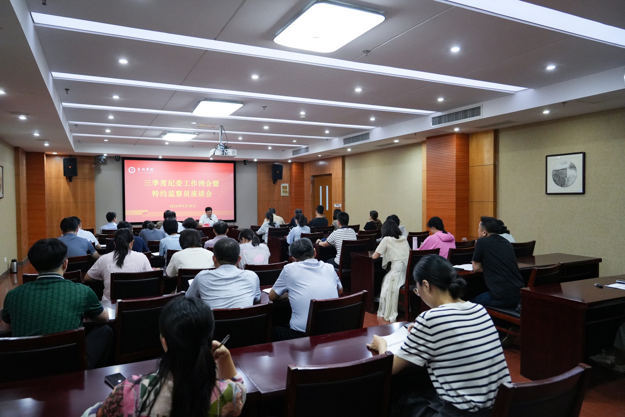 9月18日下午,bat365召开三季度纪委工作例会暨特约监察员座谈会。校纪委委员、二级党组织纪检委员、特约监察员、专职纪检监察干部参加会议。校党委常委、纪委书记何军主持会议并讲话。