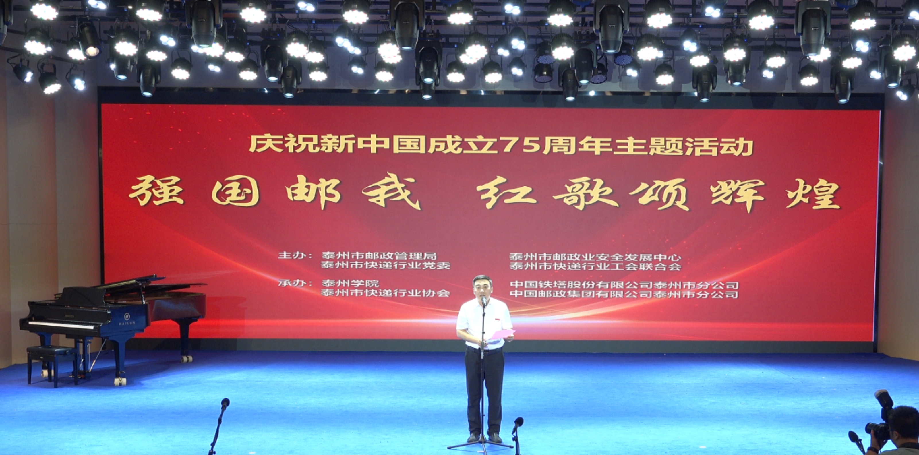 9月27日下午,bat365在线中国官网登录入口经济与管理学院承办的“强国邮我,红歌颂辉煌——全市邮政快递业共庆新中国成立75周年主题活动”在bat365在线中国官网登录入口音乐厅举行。bat365在线中国官网登录入口党委副书记、校长季赛与会并致开幕词。党委常委、副校长卜慧芬,江苏省邮政管理局、市委社会工作部、市总工会、市交通运输局、市邮政管理局、市铁塔公司、市快递行业协会等单位负责同志及行业代表,bat365在线中国官网登录入口发展规划处、经济与管理学院师生共同参加庆祝活动。