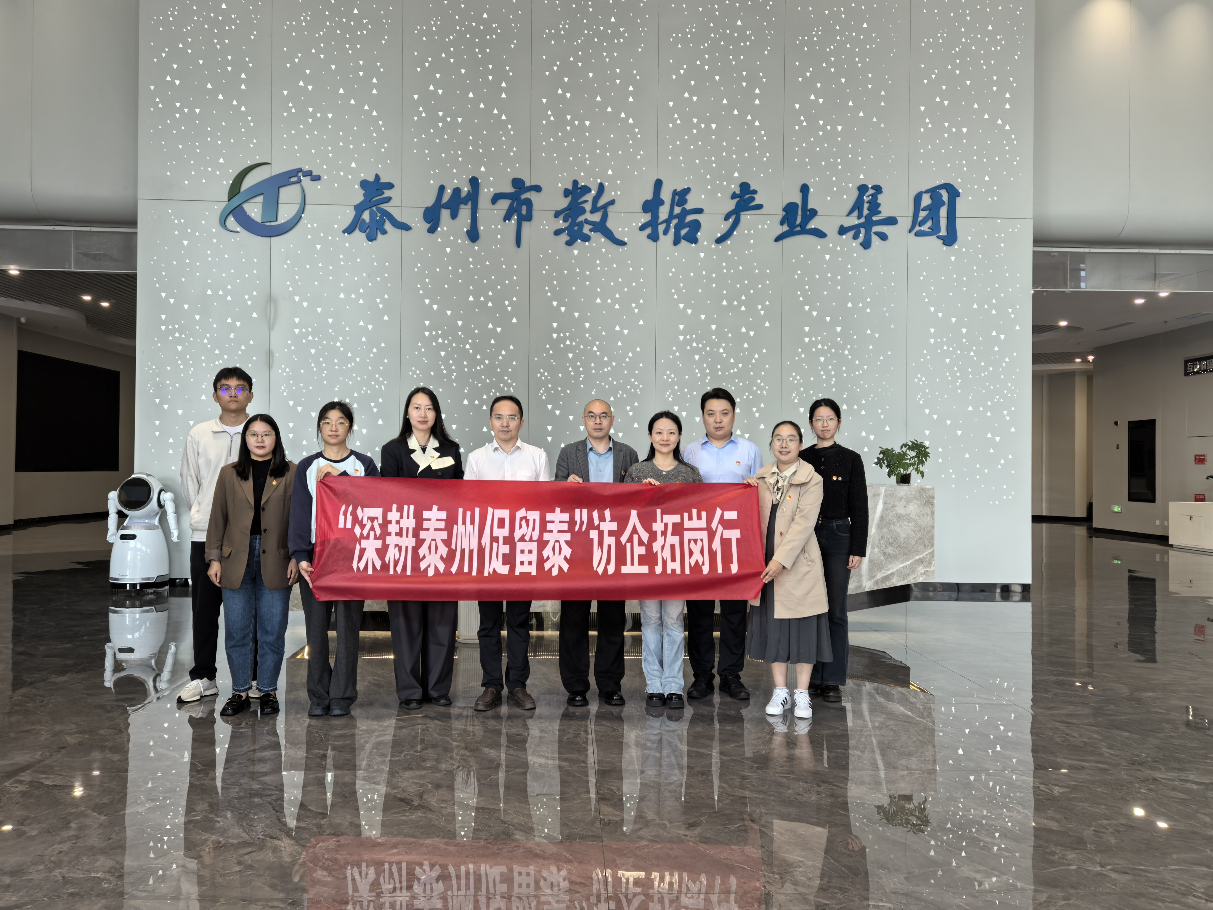 活动第一阶段,人文学院师生党员代表走访参观泰州市数据产业集团有限公司运营情况,详细了解企业运营范畴和人才需求,感受企业文化,促进学生“深耕泰州留泰就业”。