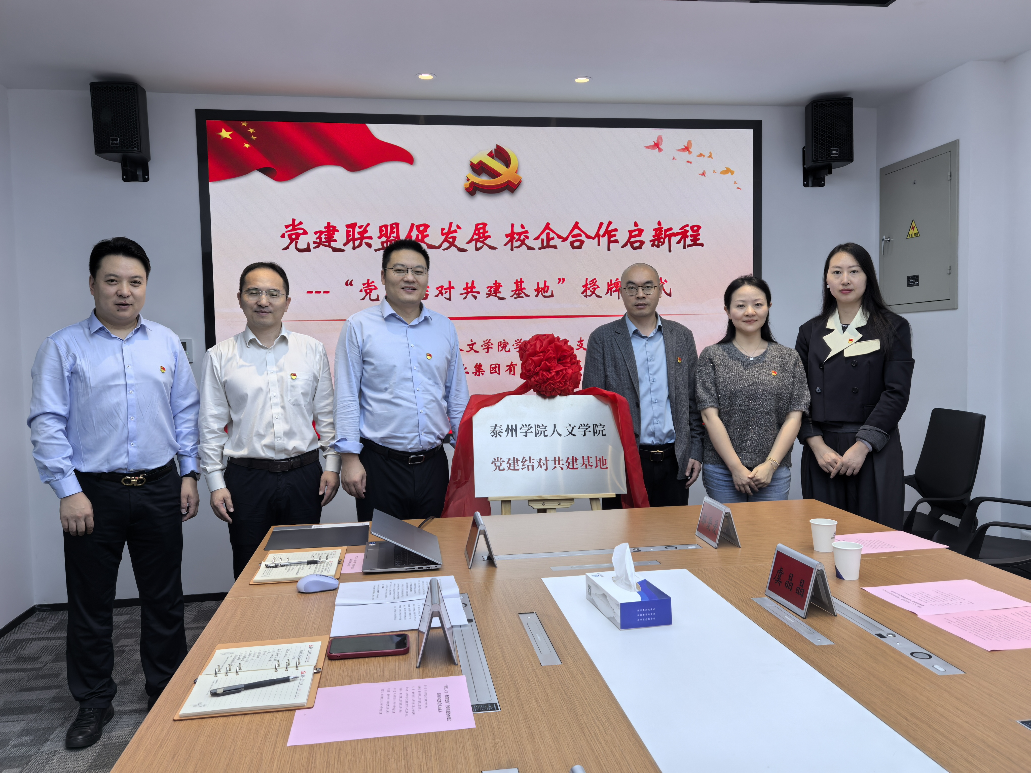 第二阶段,开展党建结对共建签约仪式。丁俊杰致欢迎词,侯维娜宣读《党建联盟促发展校企合作启新程——党建联建共建协议书》,吴小荣介绍了bat365在线中国官网登录入口服务并引领地方文化、经济发展的举措,强调党建结对、校企合作能做到优势互补,助推“双向”高质量发展。随后党建结对双方现场签署协议书,为“bat365在线中国官网登录入口人文学院党建结对共建基地”揭牌。