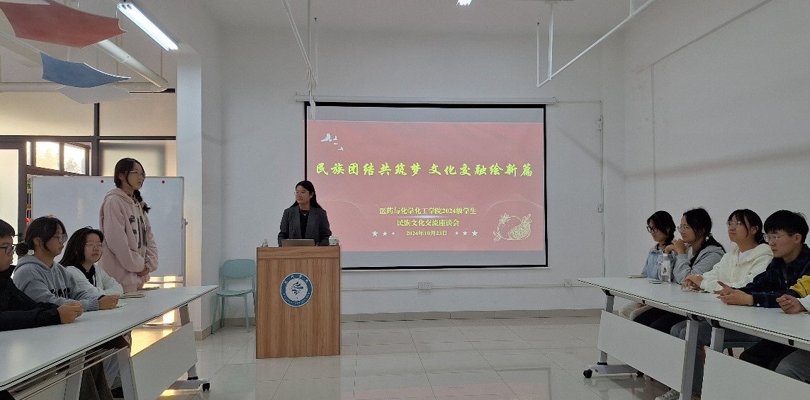 为全面学习贯彻习近平总书记关于加强和改进民族工作的重要思想,铸牢高校学生中华民族共同体意识,促进各民族交往交流交融,10月23日,医药与化学化工学院在“一站式”学生社区召开“民族团结共筑梦,文化交融绘新篇”民族文化交流座谈会。学院党总支书记朱诚、党总支副书记张红祥、年级辅导员以及2024级各民族学生代表参加座谈,会议由学院团总支书记高菲晨主持。