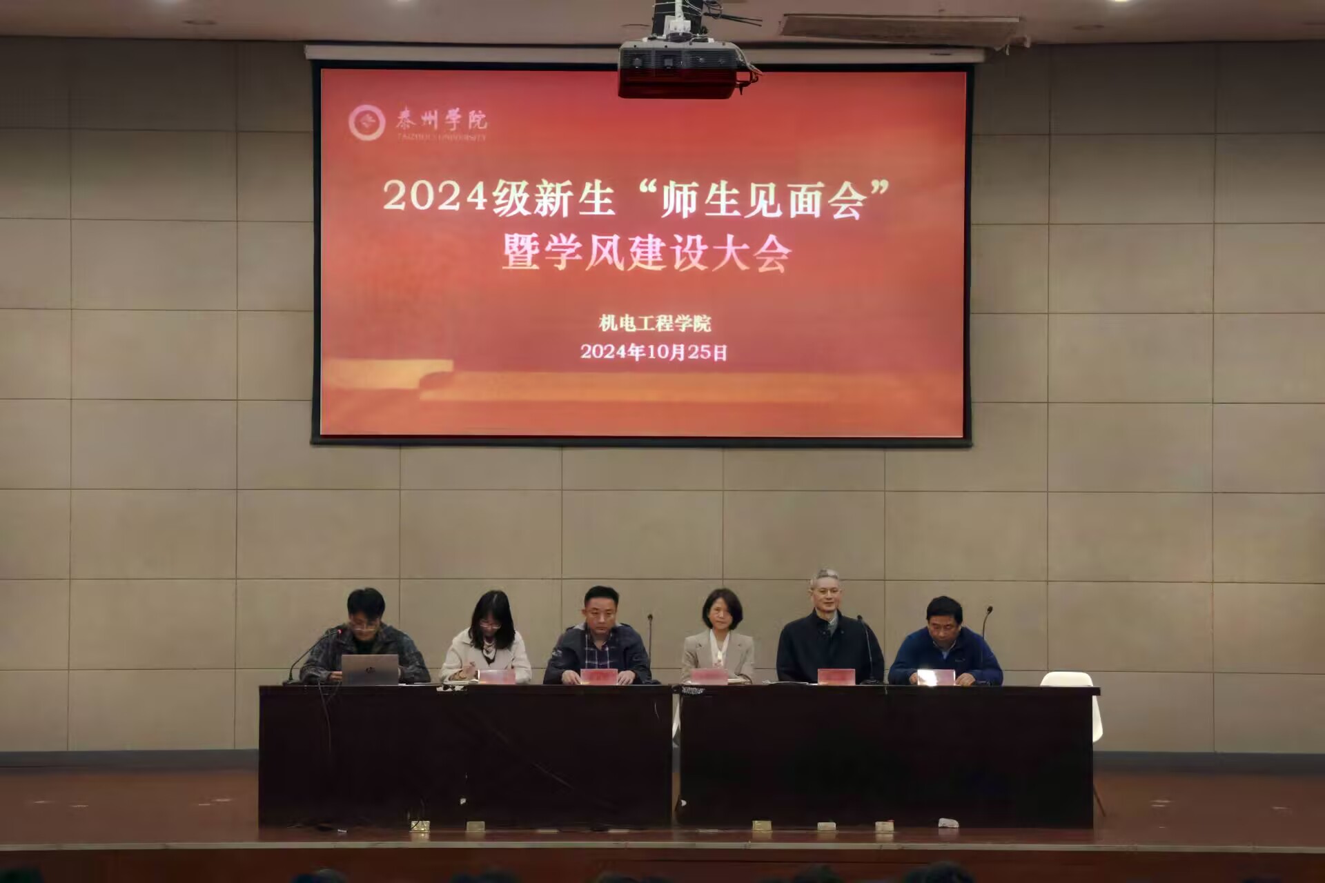 为引导和帮助新生尽快适应新环境,确保新学期学风建设工作不断线,10月25日,机电工程学院在图书馆报告厅召开2024级新生“师生见面会”暨学风建设大会。学院领导班子成员,教务科、学工办及2024级全体新生参与活动。活动由2024级年级辅导员董自然主持。