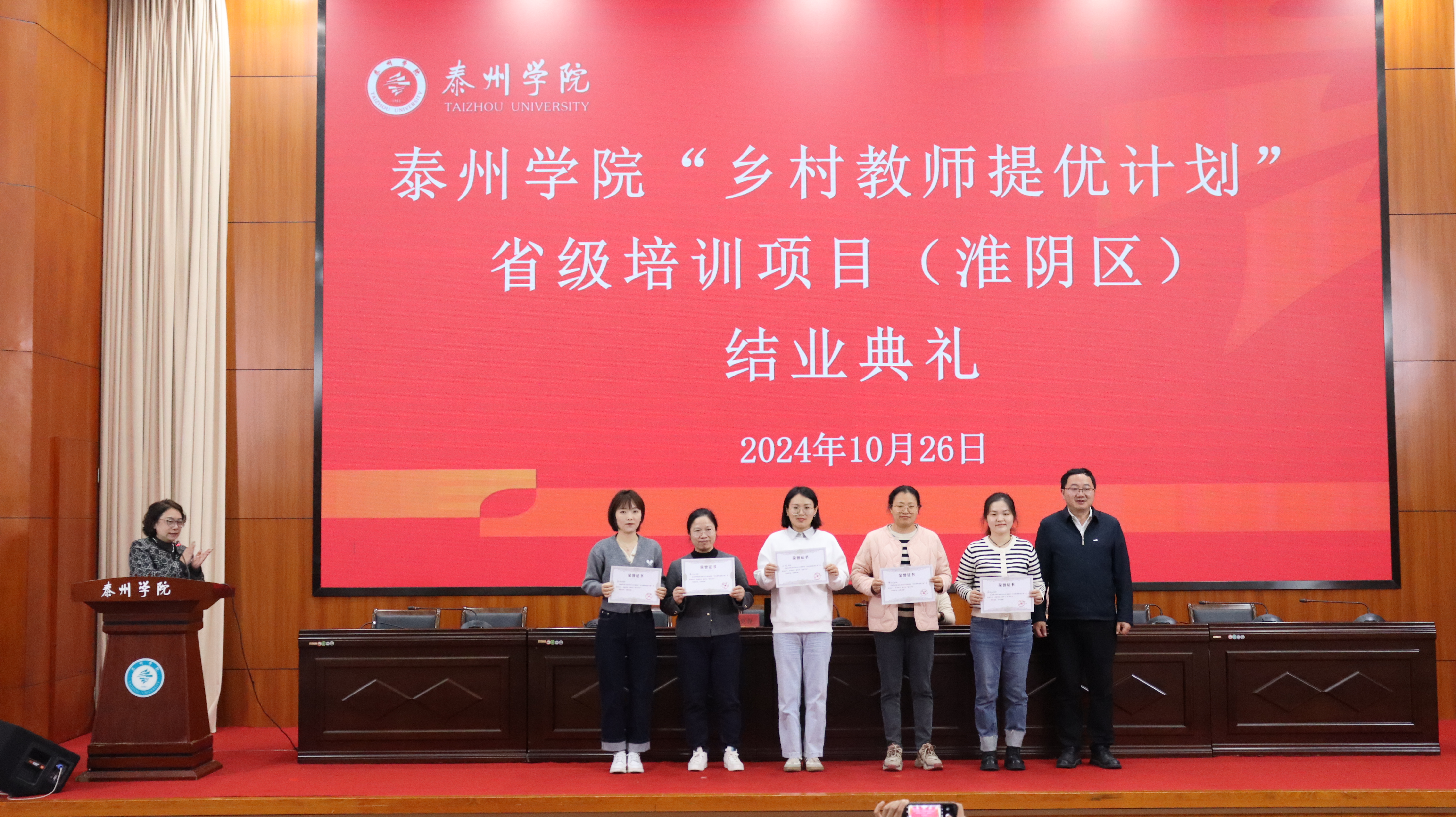 10月26日上午,江苏省“乡村教师提优计划”淮阴区小学英语骨干教师培训班结业典礼在D1216举行。泰州市海陵区小学英语教研员吉桂凤,淮安市淮阴区小学英语研训员陆红霞,bat365在线中国官网登录入口外国语学院院长李更春、副院长丁莉等出席会议。