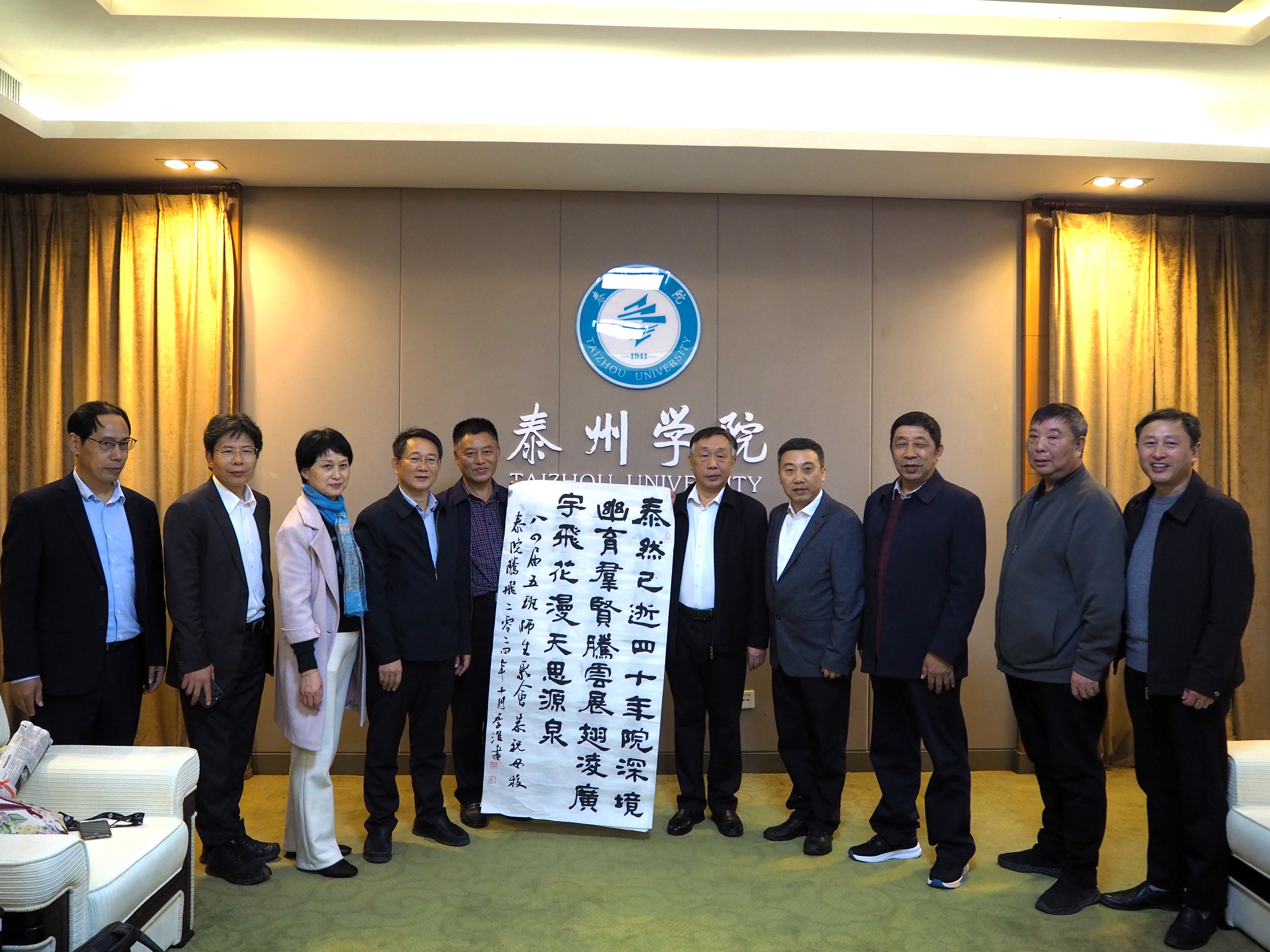 27日下午,部分校友(其中一名校友专程从北京返校参加)参观济川校区,并向母校赠送“泰院腾飞”藏头诗书法作品。