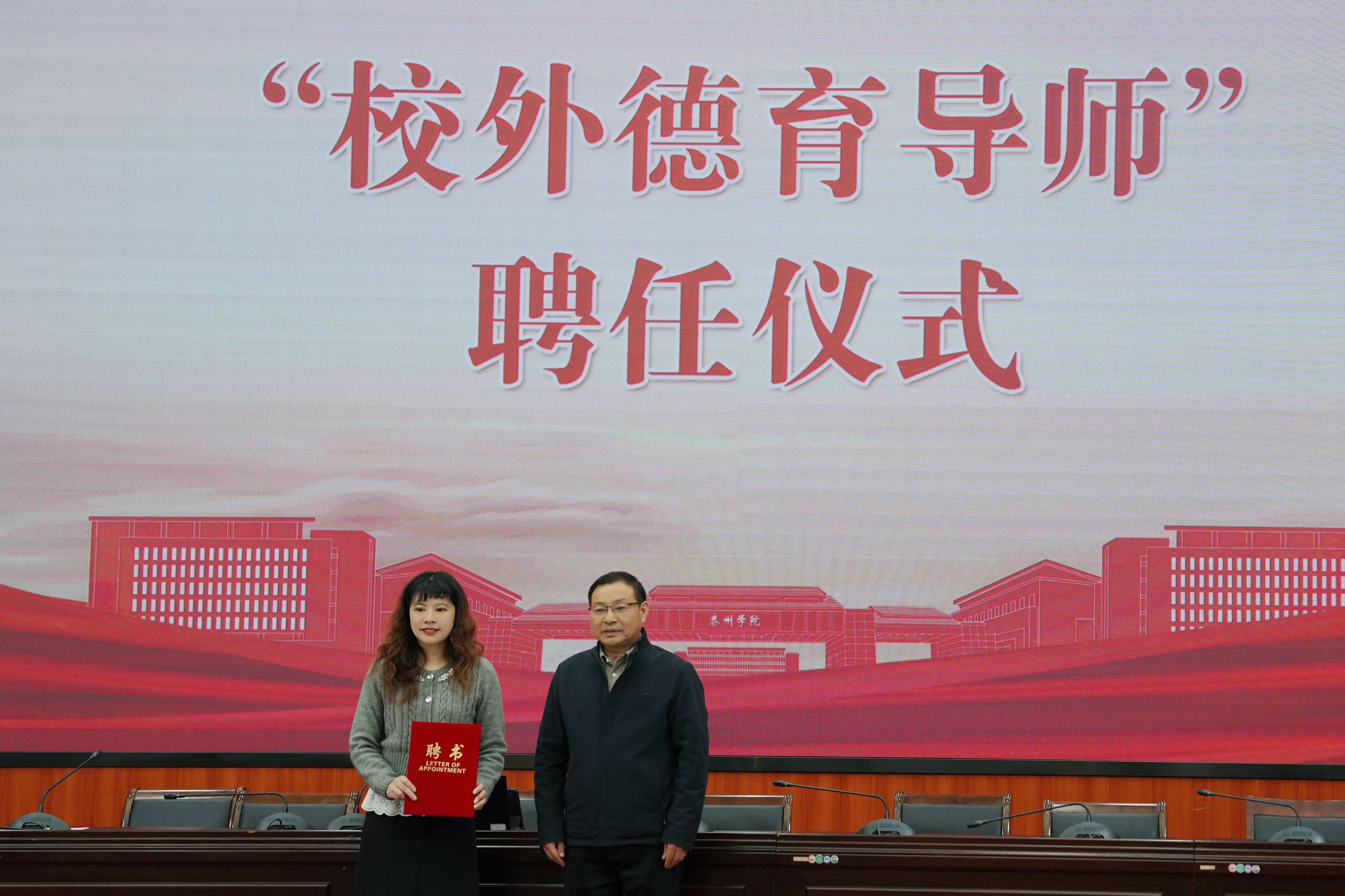 11月4日晚,bat3652008届优秀校友、全国模范教师、泰州市海军小学教科室主任申慧敏应邀做客教育科学学院第30期“致远讲堂”,为该院小学教育专业200多名师生作了题为“新时代教师专业成长的行动逻辑”的专题讲座,讲座由教育科学学院副院长朱以财主持。讲座开始前还举行了“校外德育导师”聘任仪式,校师范教育中心主任蔡俊为申慧敏颁发了聘书。