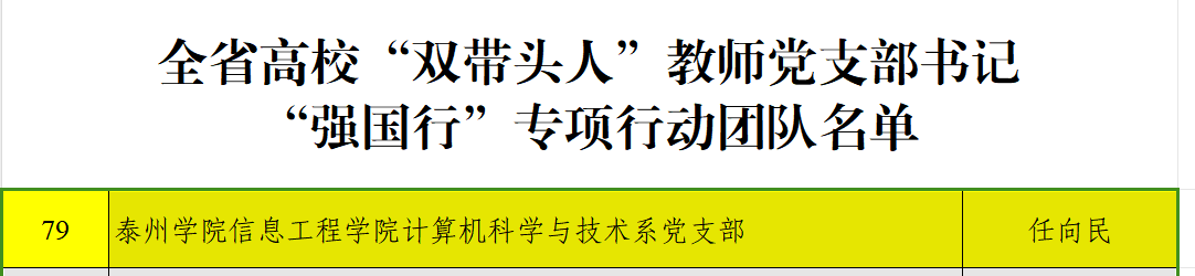 近日,江苏省委教育工委公布了全省高校“双带头人”教师党支部书记“强国行”专项行动团队名单,bat365信息工程学院计算机系党支部(原计算机科学与技术系党支部)成功入选。此项目是计算机系党支部获评“全省党建工作样板支部”后,在支部党建创建方面的又一突破。