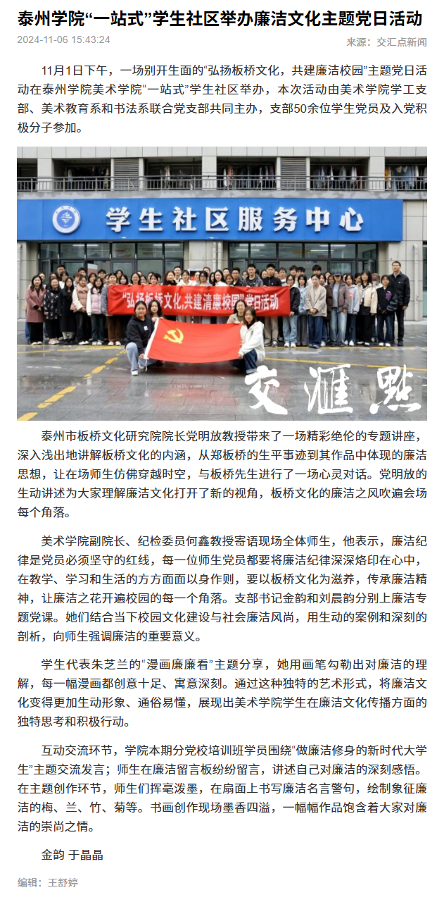 交汇点新闻11月6日报道bat365“一站式”学生社区举办廉洁文化主题党日活动