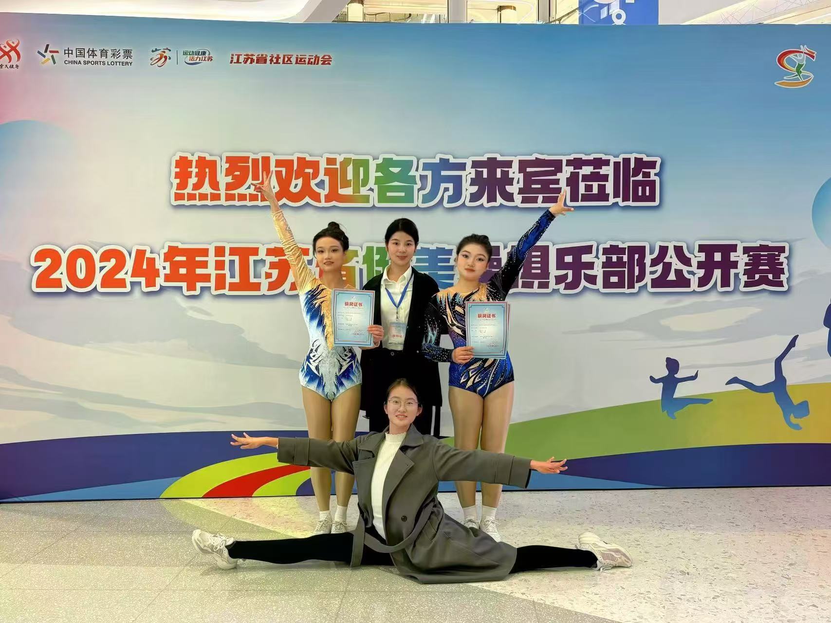 2024年11月16日, bat365在线中国官网登录入口健美操队在江苏省健美操俱乐部公开赛中再创佳绩,音乐学院姚嘉欣同学荣获女子单人操第二名,外国语学院余皖情同学获得第三名。成绩的取得反映出bat365健美操竞赛水平的显著提升。