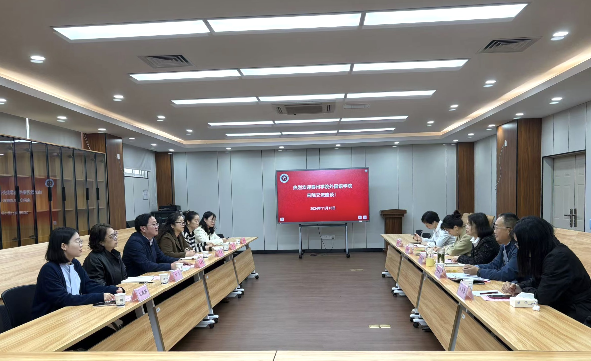 11月15日,外国语学院院长李更春、副院长周侠、副院长兼大学外语教学部主任丁莉等一行6人,前往南京信息工程大学文学院学习交流。南京信息工程大学文学院院长赵霞、副院长兼公共英语教学部主任郑友奇、英语系与翻译系主任陈梅松、公共英语教学部教研室主任杨艳琴等参加了座谈。