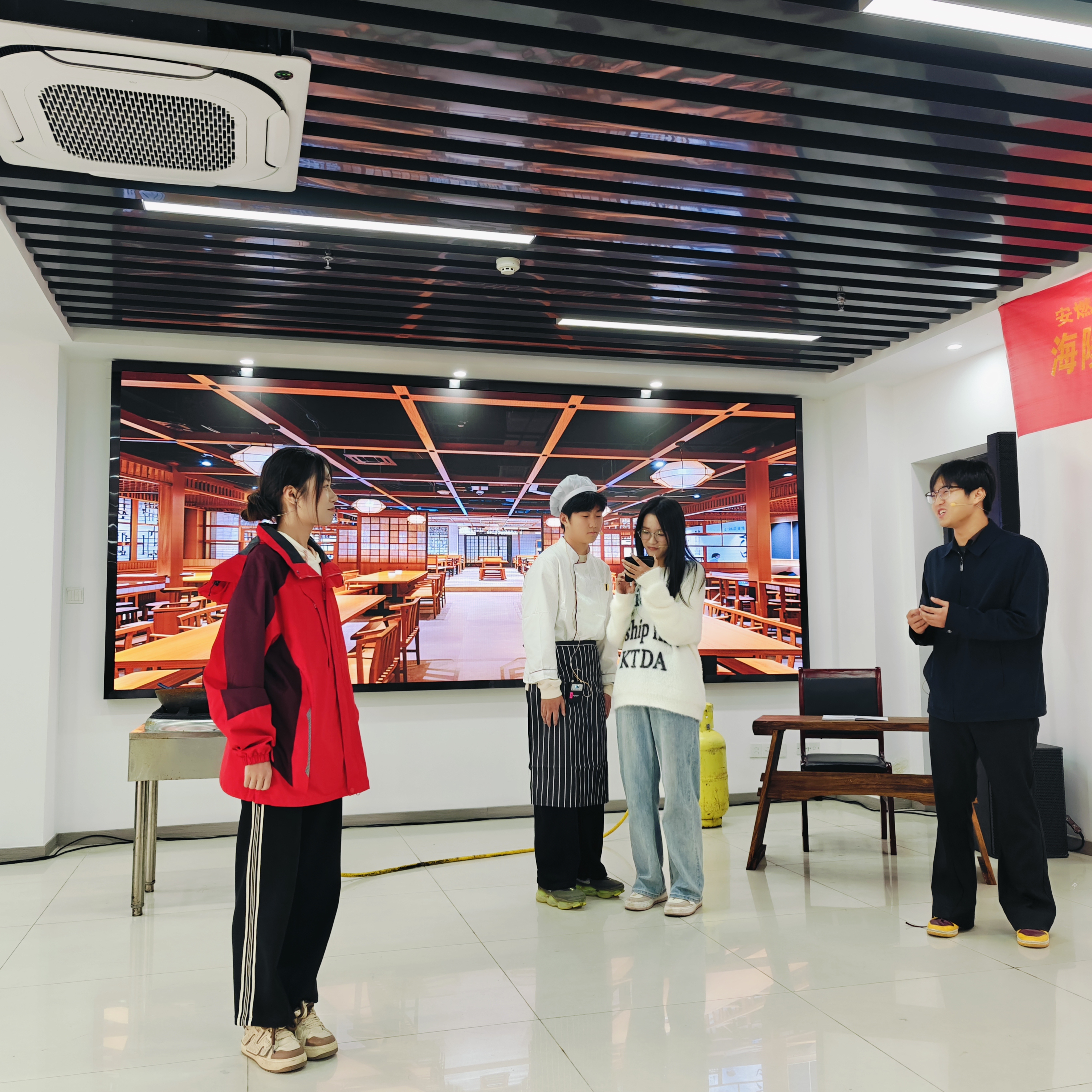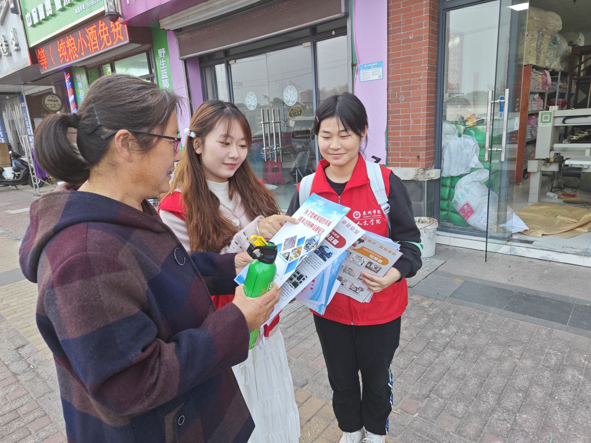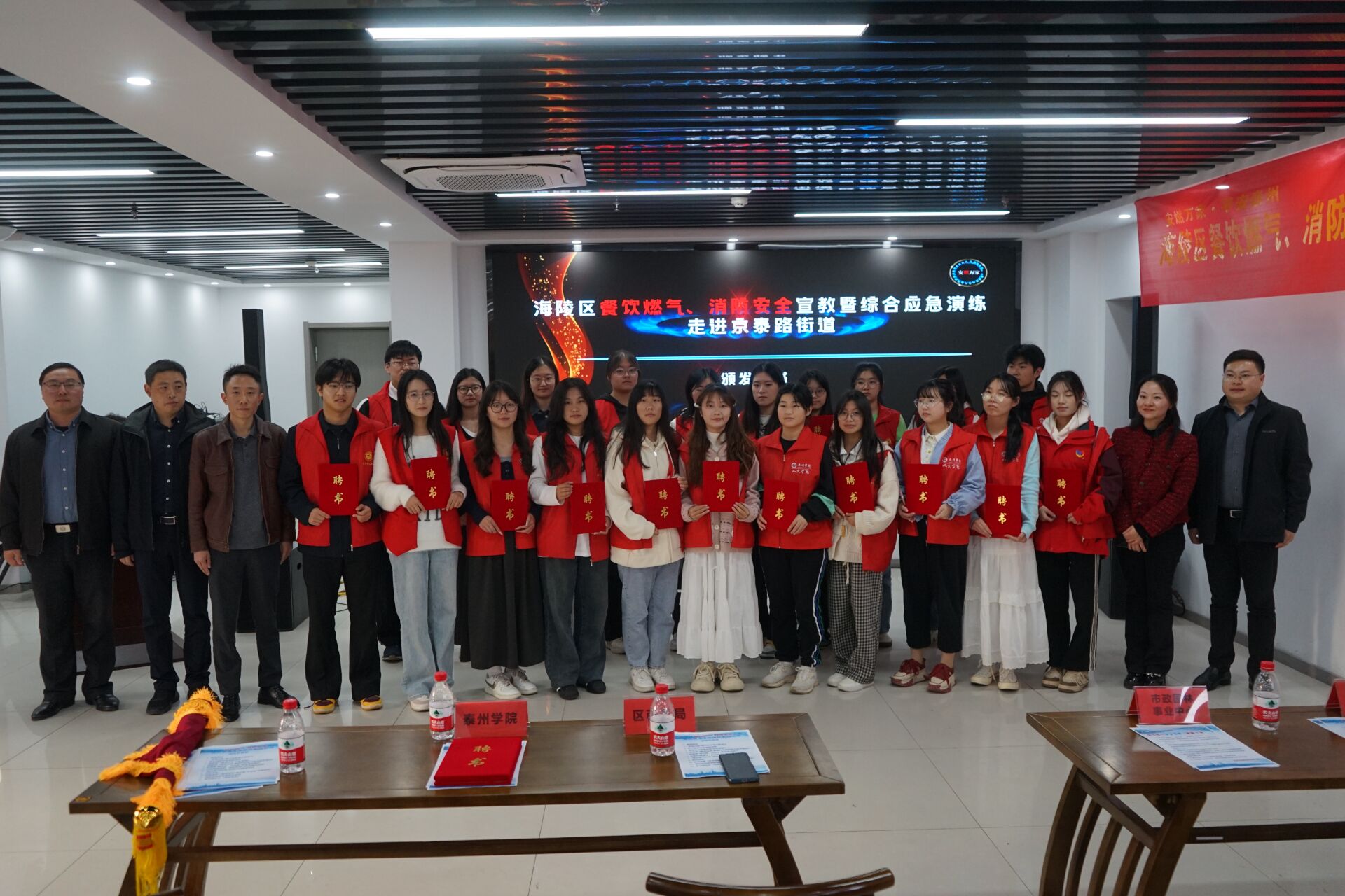 活动现场,人文学院四位志愿者表演的情景剧《管电齐推 平安海陵》,受到参会领导、居民代表的高度赞扬;22位师生志愿者受聘为“泰顺社区燃气安全宣传员”。活动结束后,志愿者们走进沿街餐饮商超进行宣讲。