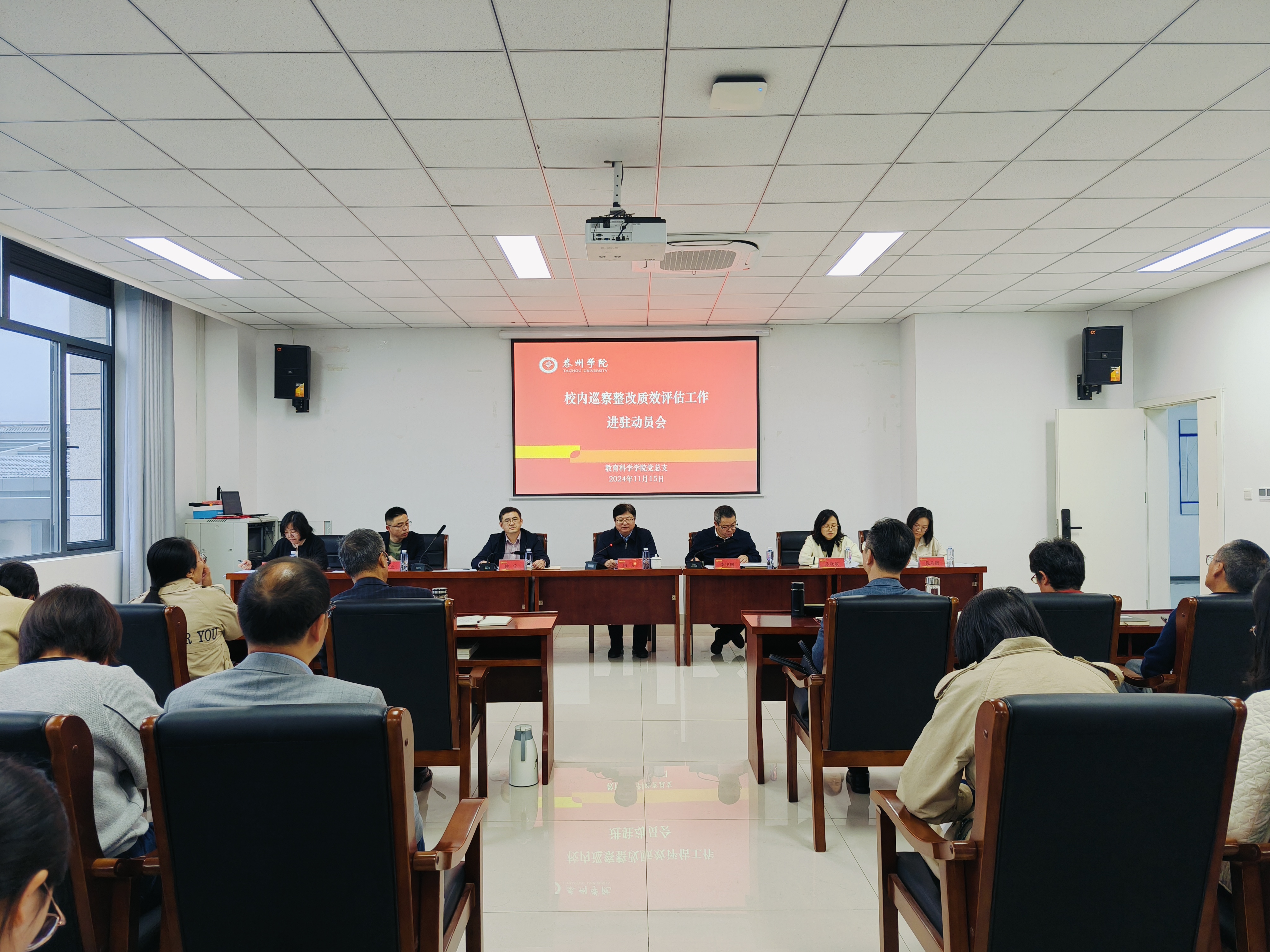 11月15日,bat365召开巡察整改质效评估工作进驻动员会,启动巡察整改质效评估试点工作。校党委常委、纪委书记、巡察工作领导小组副组长何军出席会议并讲话。质效评估组全体人员,教育科学学院党政负责人、教职员工、学生代表参加会议。会议由教育科学学院党总支书记仲宁主持。