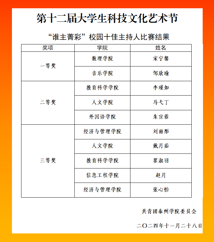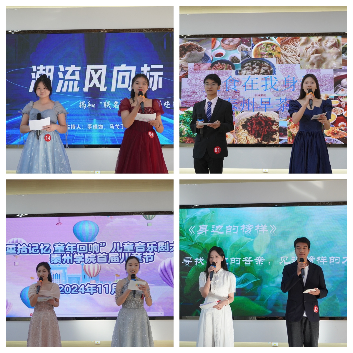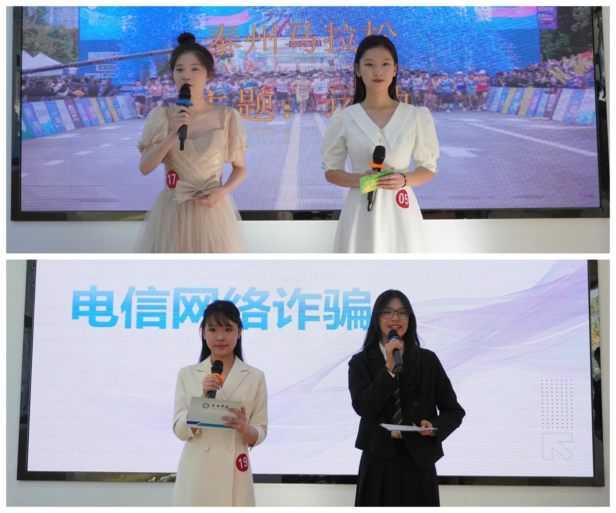 为丰富校园文化生活,培养bat365学生的语言表达能力,11月28日,bat365在“海陵·bat365在线中国官网登录入口”就业人才服务站举办“谁主菁彩”十佳主持人比赛,此次活动由校团委主办,数理学院承办。泰州广播电视台广播交通文艺部总监刘康、海陵区融媒体中心主持人赵一鲜、城南街道办事处副主任孙梅、校学工处副处长周颖和校团委副书记黄素雯担任评委,各学院参赛选手和学生观众参与本次活动。