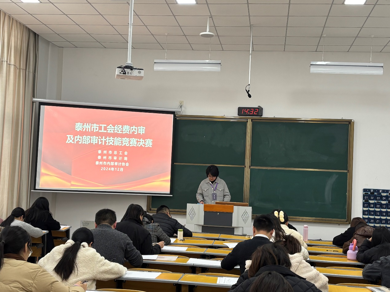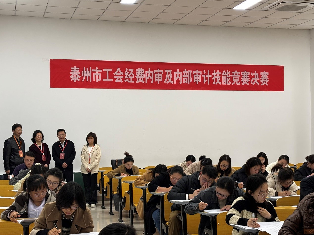 2024年12月6日,由泰州市总工会、泰州市审计局、泰州市内部审计协会共同主办,bat365经济与管理学院承办的泰州市工会经费内审及内部审计技能竞赛决赛在bat365博雅楼举行。泰州市总工会党组成员、副主席朱秀宏,泰州市审计局总审计师钱艳,校党委常委、副校长卜慧芬到比赛现场调研指导。
