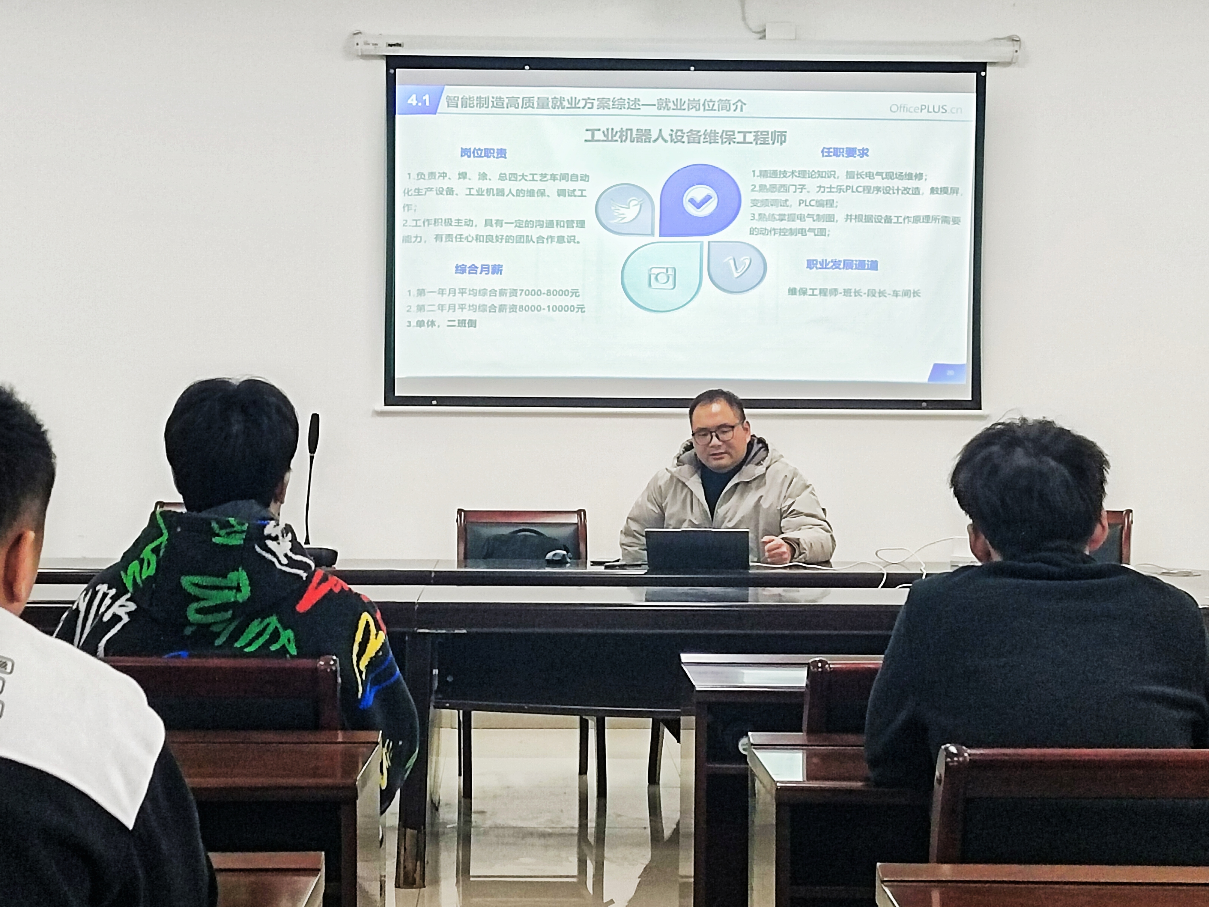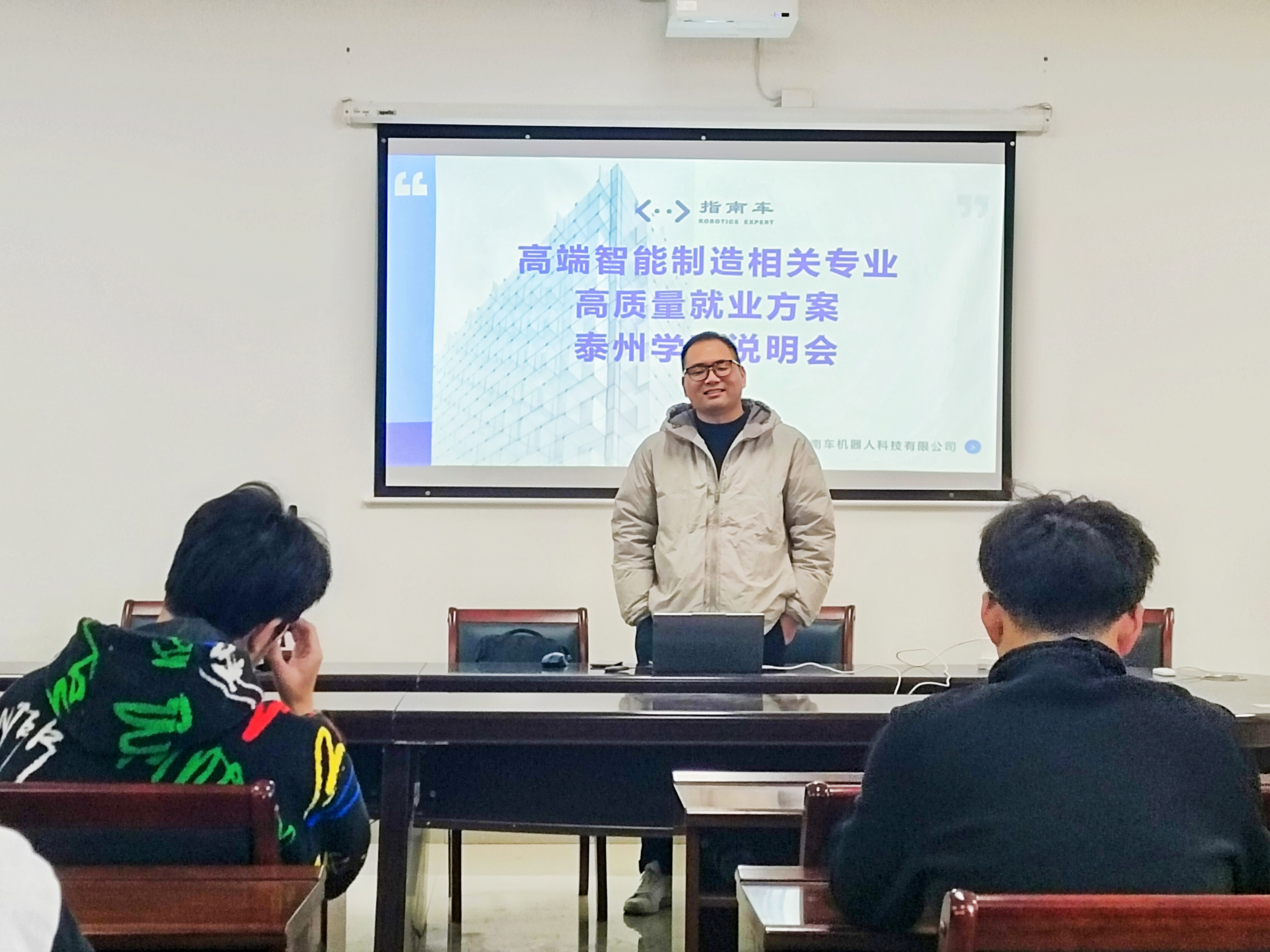 指南车机器人科技有限公司是一家定位于建立以机器人自动化工程师为核心的智能制造生态系统服务商。宣讲会上,企业负责人向同学们详细介绍了公司的发展历程、核心业务、企业文化以及在机器人领域所取得的显著成就。