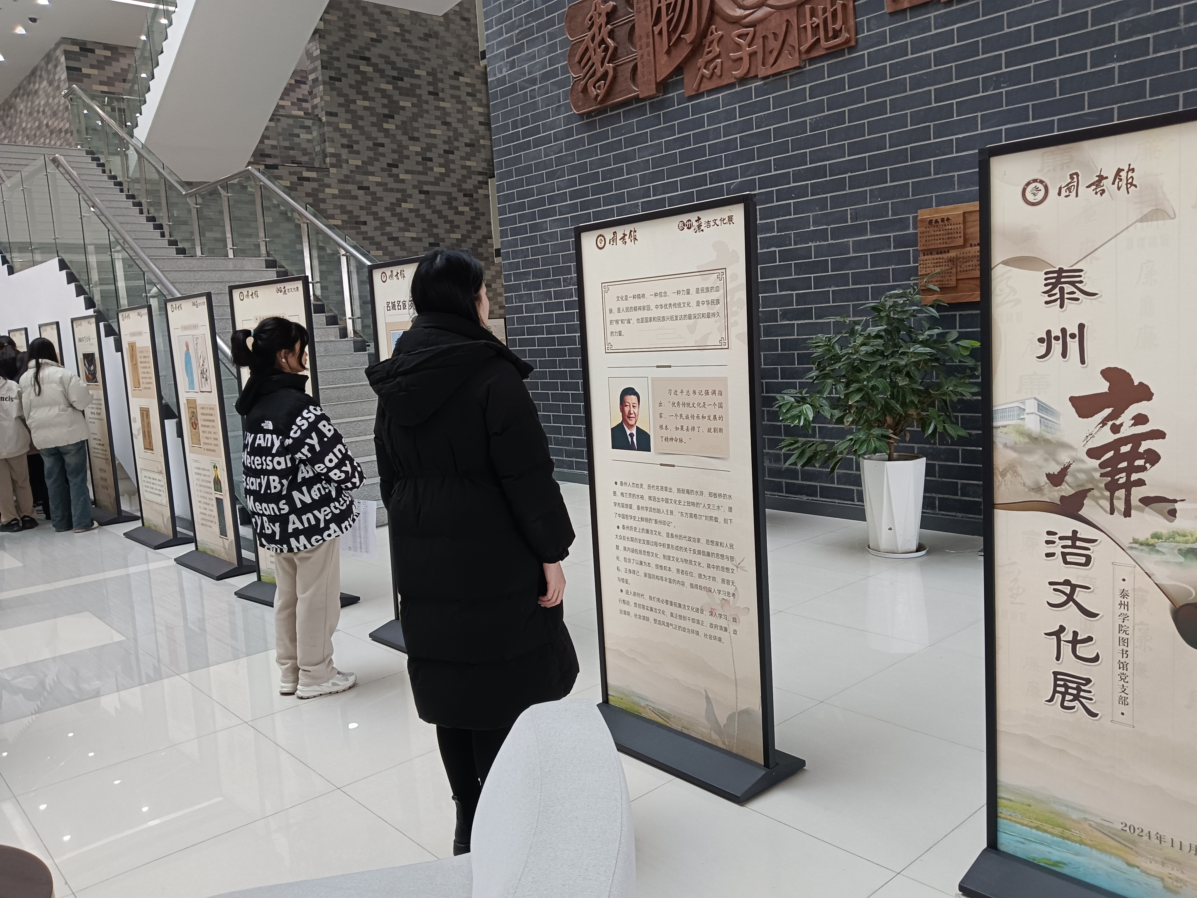 图书馆廉洁文化园地是学校廉洁文化建设“一院一品”项目。“泰州廉洁文化展”是图书馆和人文学院在深度挖掘泰州历史上的廉洁文化资源的基础上组织的布展。后续,图书馆将进一步增加廉洁文化资源供给,梳理、整合中华优秀传统文化、革命文化、社会主义先进文化中的清廉内涵,建设好廉洁文化园地,开展好廉洁文化阅读活动,为学校落实立德树人根本任务添砖加瓦。