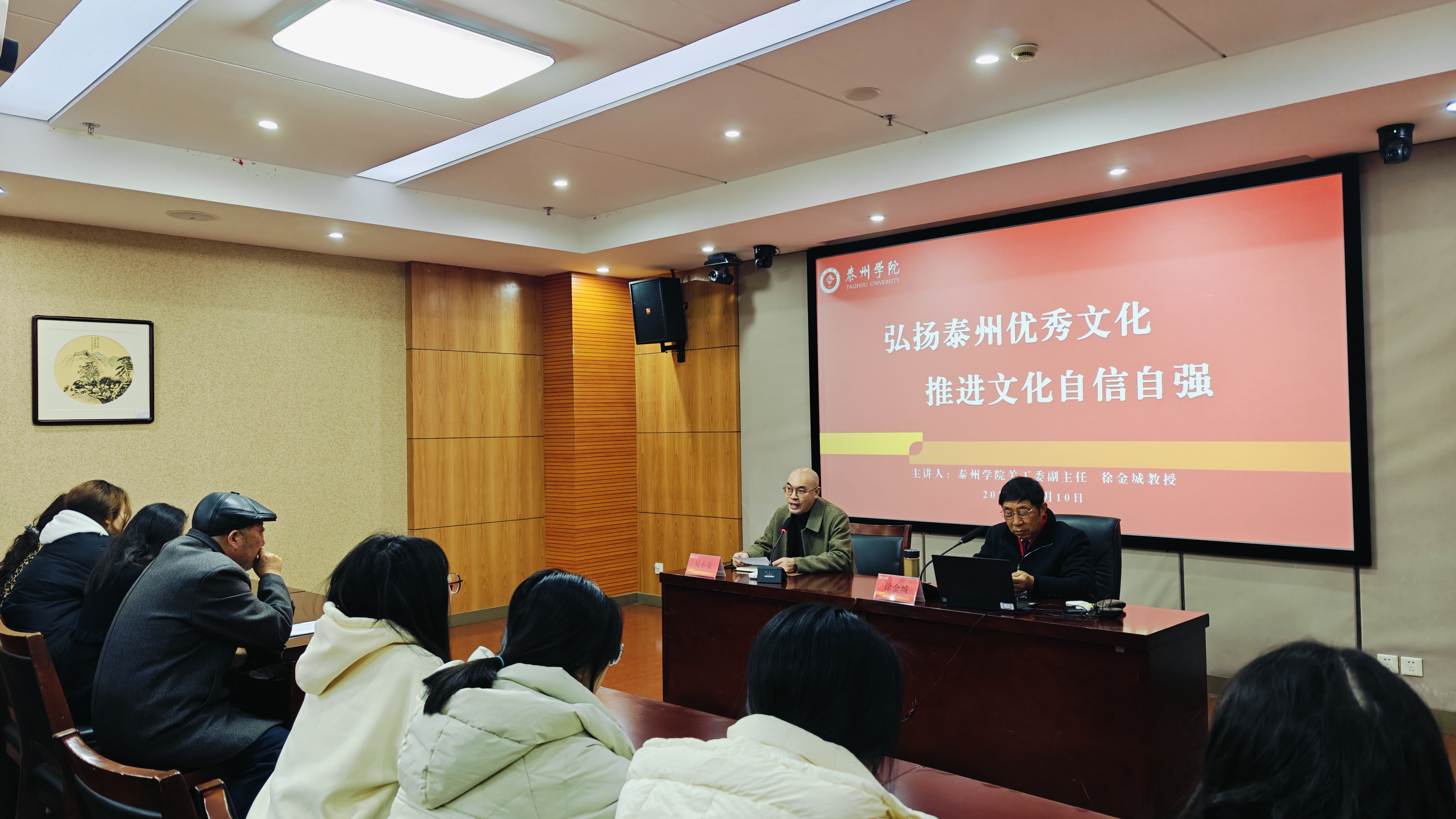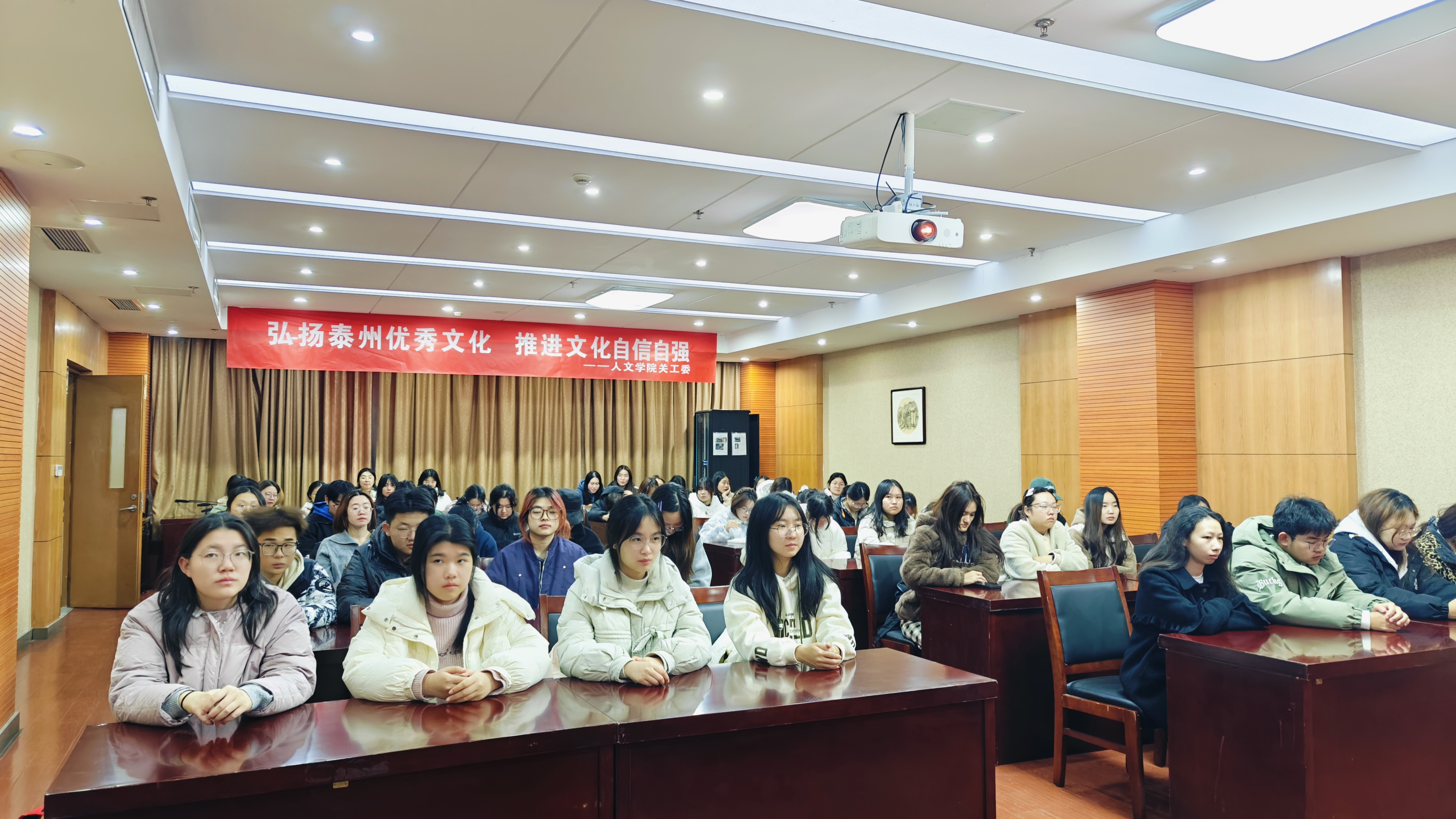 本次讲座通过宣讲弘扬泰州优秀文化,提升了大学生文化素养,坚定了大学生文化自信,促进更多人文学子知泰爱泰留泰,激励他们在新时代征程中,勇担文化传承与创新的使命,为中华文化的繁荣发展贡献青春力量。