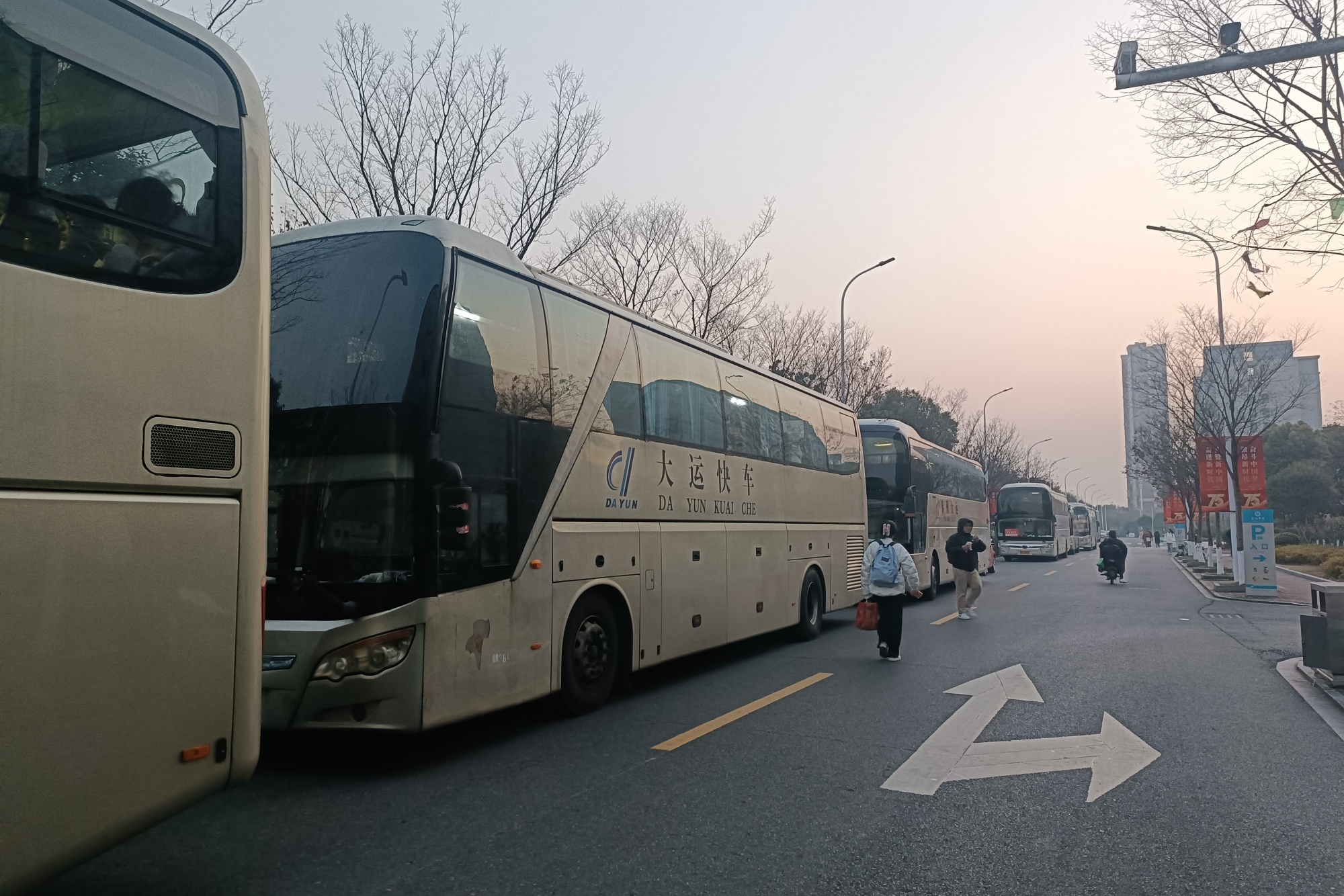 清晨6点多,天色未明,送考大巴已整齐排列等候。工作人员早早到位,有条不紊地引导考生登车。辅导员老师们现场组织并跟车服务,为考生送上鼓励与祝福。