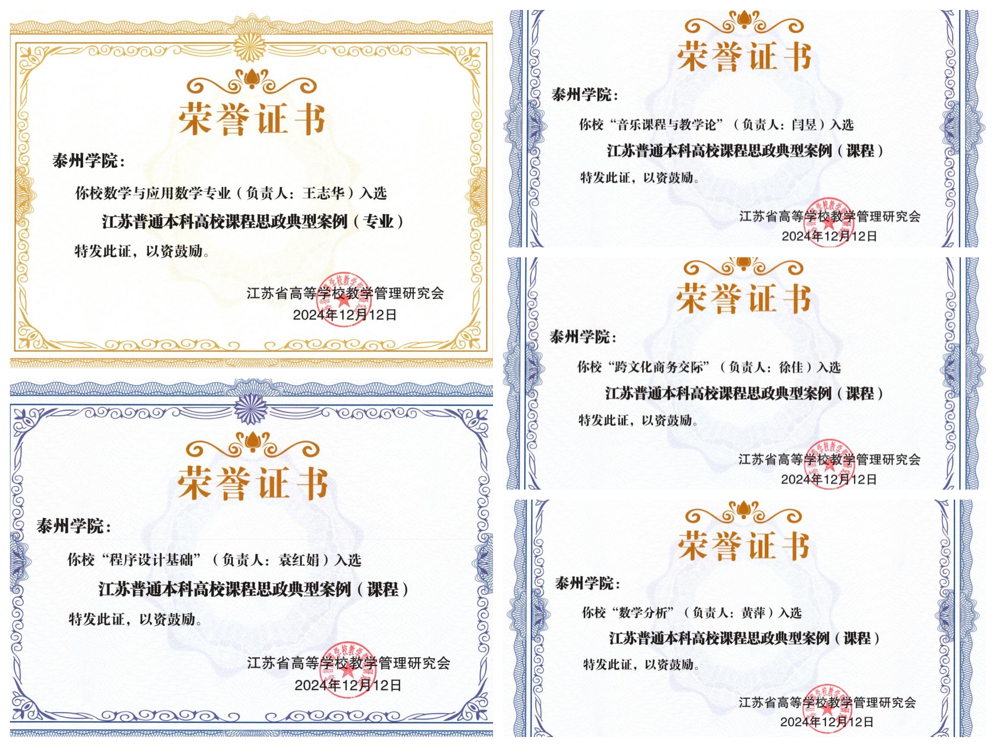 近日,江苏省高等学校教学管理研究会课程思政建设工作委员会2024年学术年会在南京召开。会上举行了2024年省课程思政专业和课程建设典型案例征集评选颁奖,bat365共有5项典型案例获得表彰,其中专业案例1项、课程案例4项。