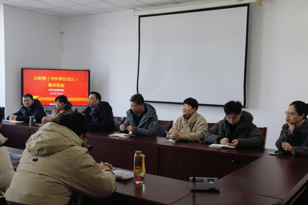 1月6日上午,经济与管理学院在G2502会议室开展2024级财务管理专业(中外学分互认)班期末班会。经济与管理学院领导班子成员、辅导员、班主任和班级全体同学参加活动。