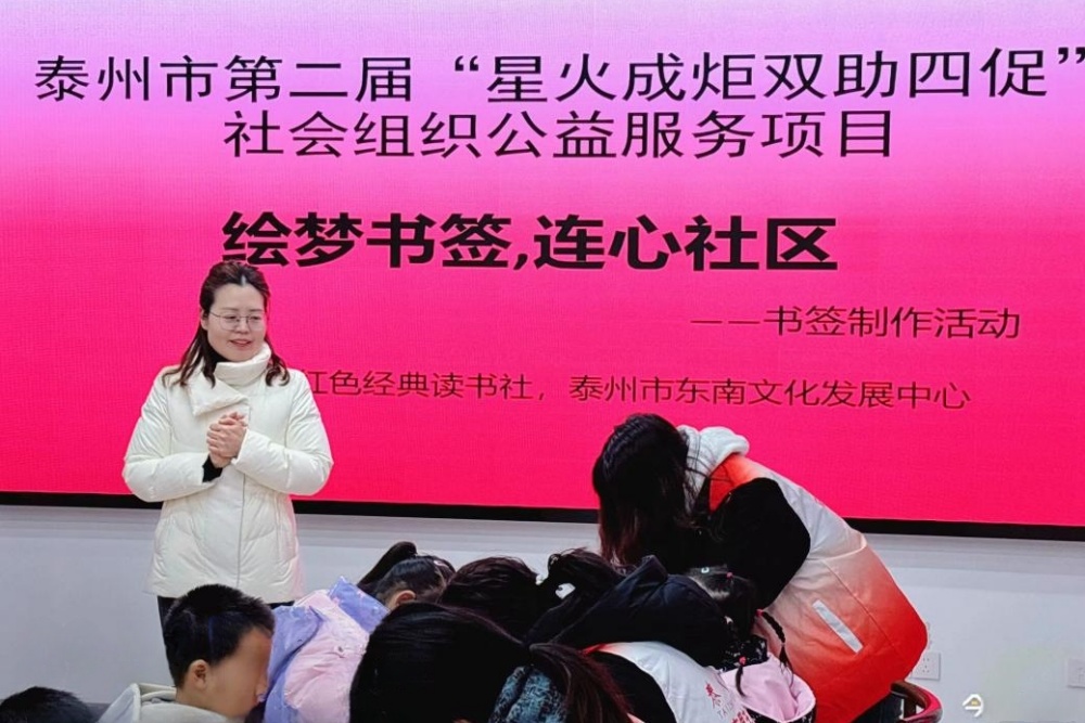 为深入推进思想政治理论课实践教学改革,传承红色基因,弘扬革命精神,增强学生的爱国主义情感和社会责任感,2月23日,由马克思主义学院、泰州市红色文化协同研究中心与泰州市东南文化发展中心联合举办的泰州市第二届“星火成炬双助四促”社会组织服务项目——“绘梦书签,连心社区”主题实践活动在泰顺社区举行。