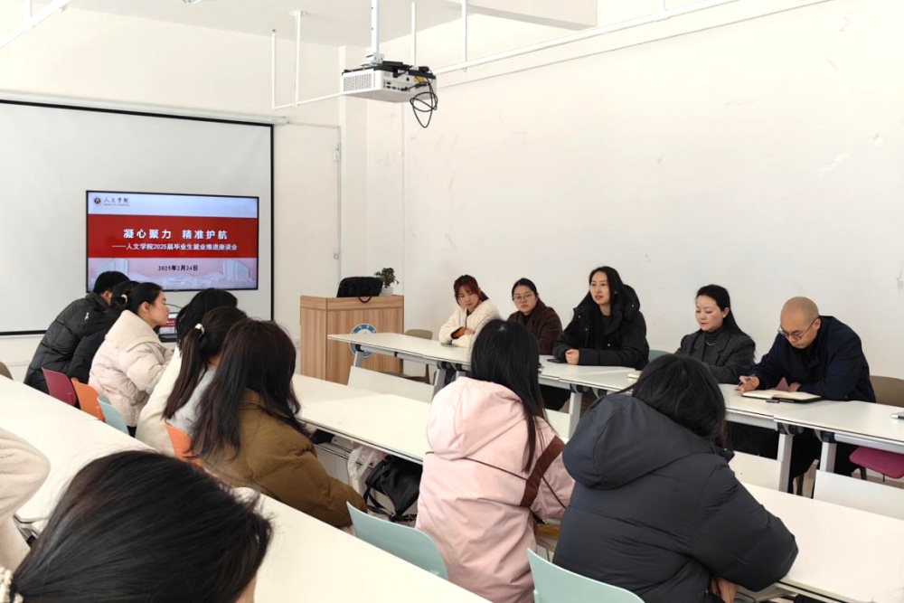 凝心聚力,精准护航。为帮助2025届毕业生更加深入地了解最新就业形势,树立正确就业观念,拓宽就业思维,提振就业信心,2月24日下午,人文学院在“一站式”学生服务中心开展2025届毕业生就业推进座谈会。学院党总支书记吴小荣,副书记侯维娜,班主任、辅导员及毕业生代表参加座谈。座谈会由侯维娜主持。