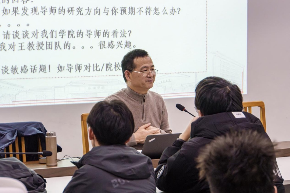 “如何与意向导师建立有效联系”“调剂过程中的黄金时间窗口”“英文面试的破冰技巧”……学生们争相抛出备战过程中的困惑。崔宝同结合多年经验逐一解答,特别指出:“复试是双向选择的艺术,既要展现专业实力,更要传递科研热忱。”2021级计算机科学与技术专业廖佳阳感慨:“今天的指导会使我受益匪浅。现在我对复试的准备路径、复习方向更清晰了。”