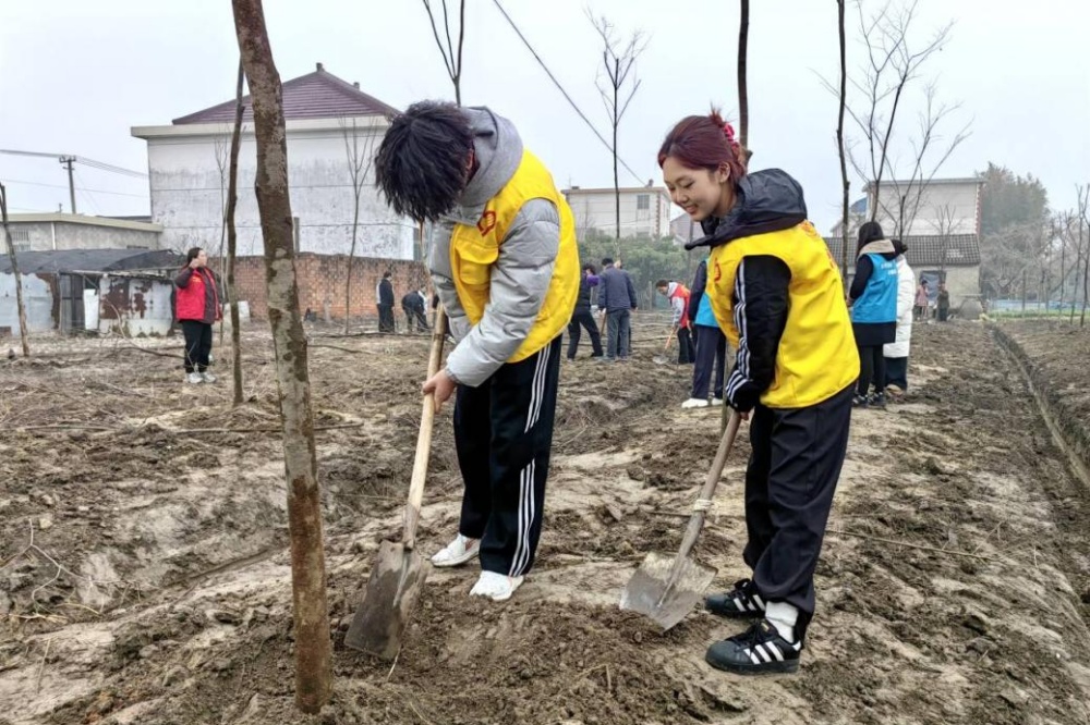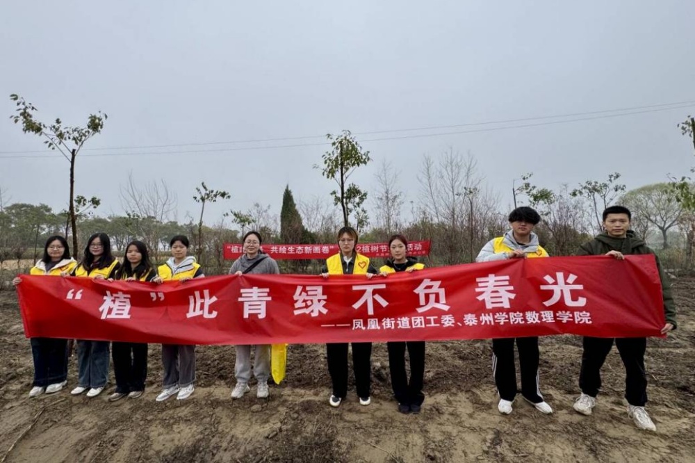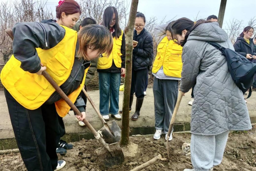 3月12日上午,数理学院联合泰州市高港区凤凰街道在梅兴社区冬枣园开展植树活动。