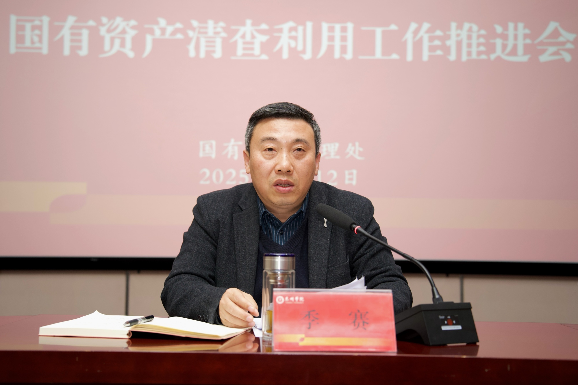 季赛在讲话中肯定了学校资产清查利用工作取得的阶段性成果,对下一阶段的工作提出了明确要求。他指出,要充分认识资产清查工作的重要性,全面掌握学校资产状况,摸清家底,及时发现和解决资产使用过程中存在的问题,确保学校资产安全,为高质量发展夯实基础;要明确资产清查工作的目标任务,坚持“查清、管住、用活”六字方针,做到清查“穿透到底”、不留死角,利用“盘活增效”、杜绝零报告;要强化责任,做到一把手总负责、督查问责动真格、结果刚性运用,以钉钉子精神狠抓落实,认真完成国有资产清查利用工作,确保工作取得实效。