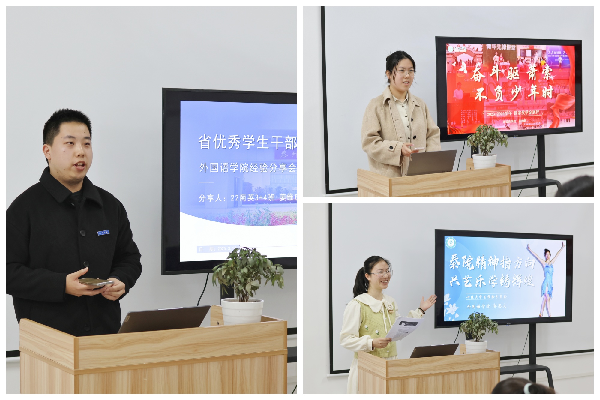 分享会上,三位优秀学子分别从专业能力培养、成长路径选择、展评作品打磨等方面展开分享。他们专业素质过硬,从学习心得到竞赛技巧,倾囊相授专业提升方式方法;他们成长路径多元,从学生干部到乡村教师,切身分享个人发展的多种可能性;他们表达能力突出,从讲稿精修到台风训练,用实战经验向学生印证“量变创造质变”的学习规律。