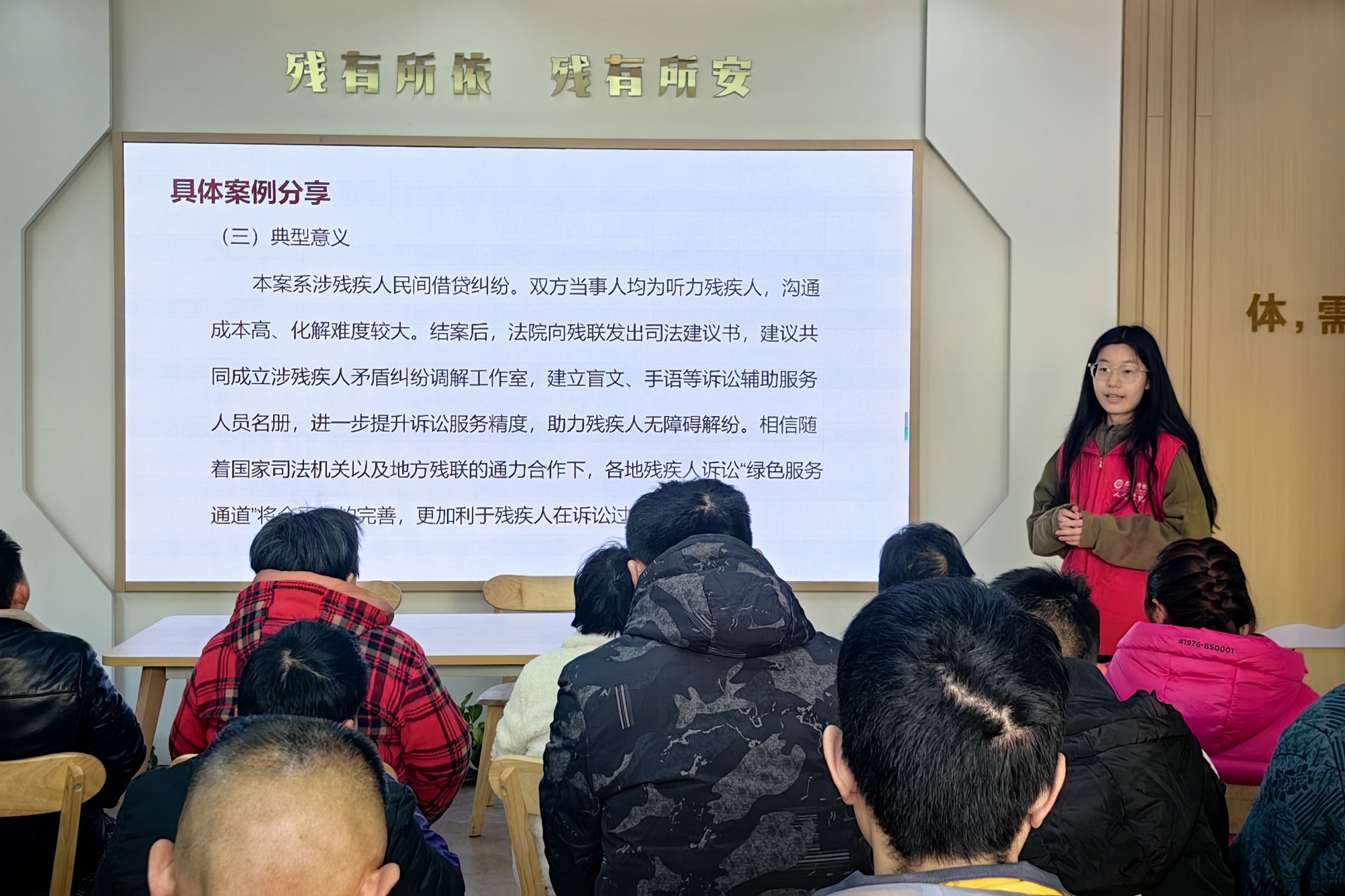 活动前期,志愿服务团队成员与海陵区人民法院民一庭的法官们进行了深入探讨。泰州市残联陈宁对志愿服务团队的普法工作表示高度赞赏,并强调残联将全力支持该项目的长期发展。