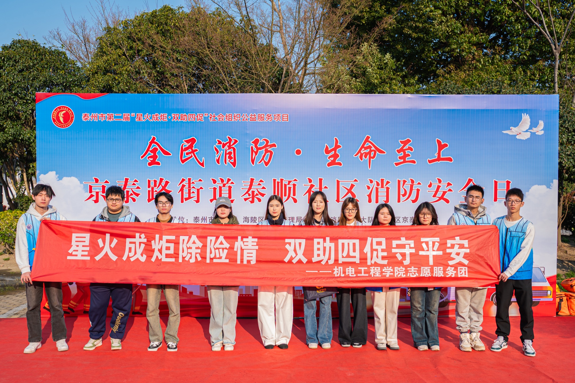 3月19日,机电工程学院“小泰阳”志愿服务团走进海陵区泰顺社区协助开展“星火成炬除险情,双助四促守平安”消防安全日活动。