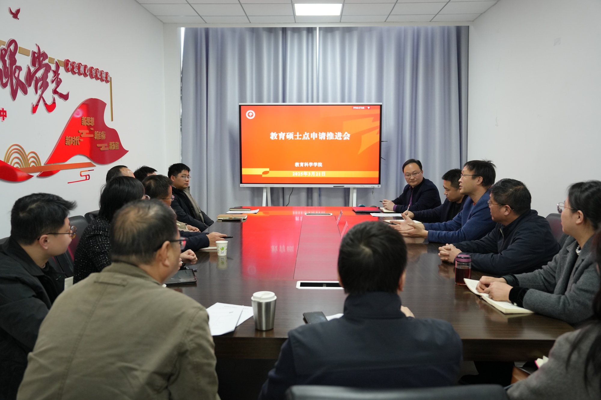 为进一步做好教育硕士专业学位授权点申报工作,3月21日下午,教育科学学院召开教育硕士点申报推进会,南京晓庄学院教师教育学院院长、教育硕士点负责人张济洲教授应邀作专题辅导报告。校科研处处长、研究生处处长陈小平,教育科学学院院长潘小明,小学教育、学科教学(语文)、学科教学(数学)、学科教学(美术)等相关专业方向的骨干教师参加会议,会议由教育科学学院副院长朱以财主持。