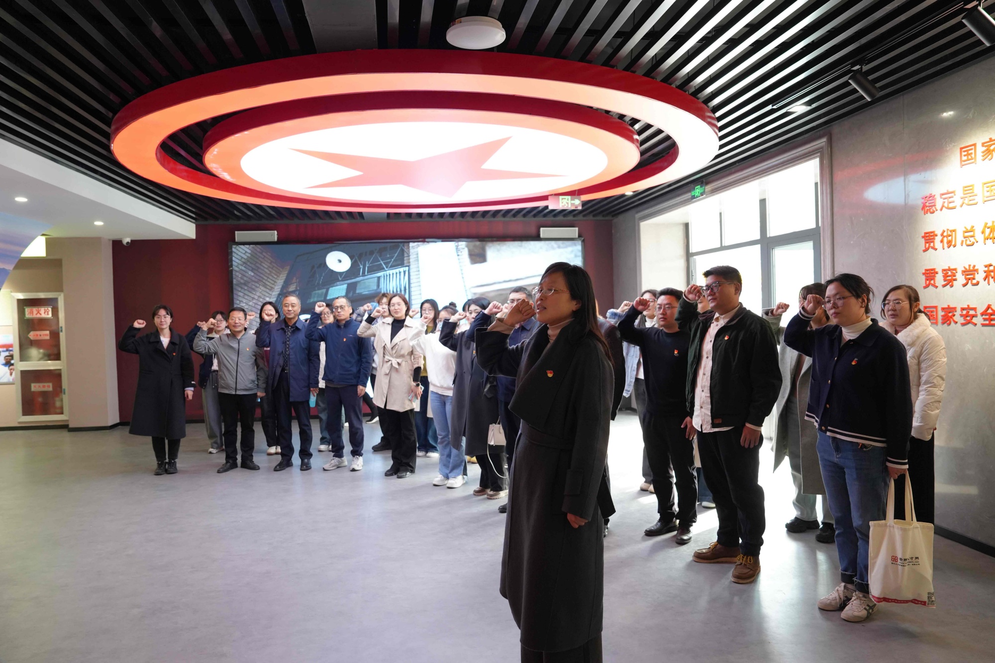 沈安娜纪念馆内,一张张历史照片再现了这位“按住蒋介石脉搏的人”的传奇人生。在求学阶段,沈安娜在启蒙老师刘伯厚的教导下,坚定了为共产主义奋斗的信念。后来在周恩来的指派下,沈安娜打入国民党中央党部做书记员,成功潜伏敌营14年,经历多次暴露风险,获取了大量国民党中央高层内部情报和核心机密。面对鲜红党旗,全体党员重温入党誓词,铿锵誓言回荡馆内,彰显着新时代师生党员继承先烈遗志、永葆政治本色的坚定决心。