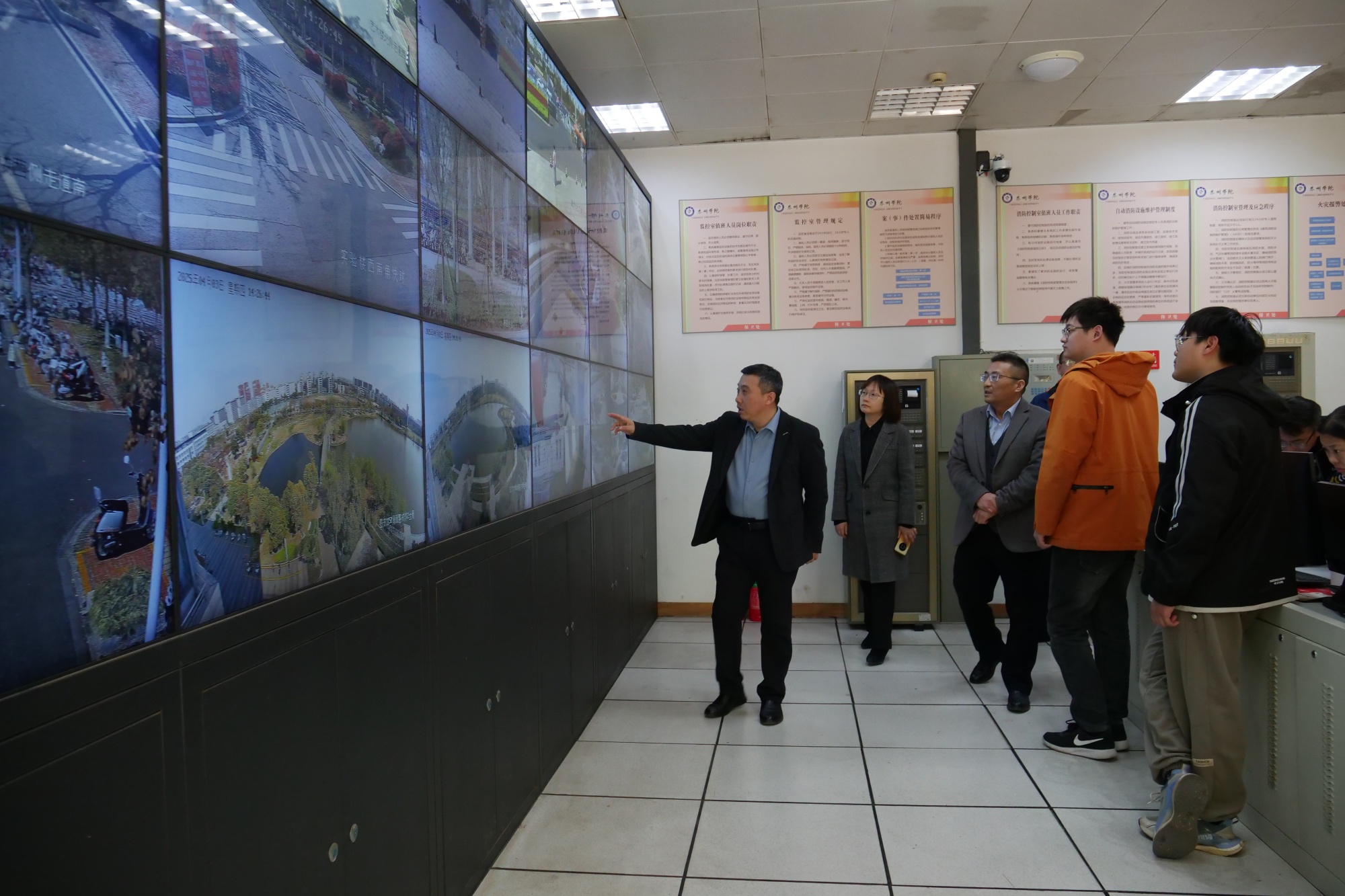 检查组先后对监控室、危化品仓库、机电工程学院实训室、食堂、商超、学生宿舍等重点部位进行了安全检查,对人员值班值守、食品卫生安全、实验实训安全、消防安全、交通安全等情况进行检查督导。